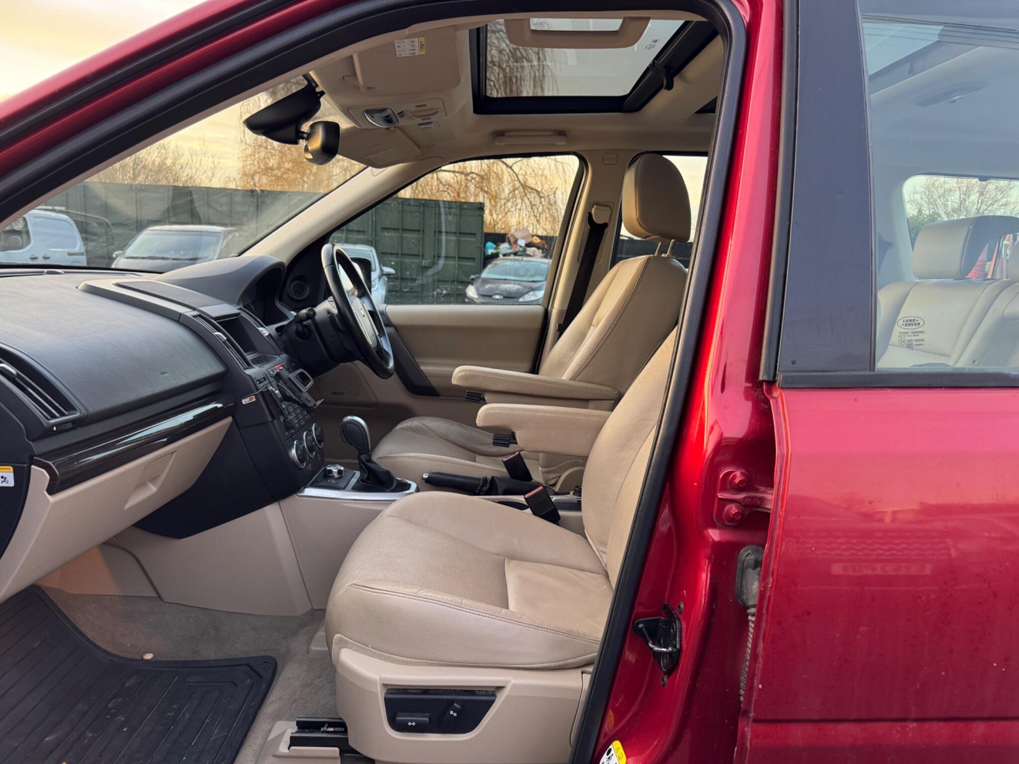 THIS Land Rover Freelander 2 2.2 TD4 HSE Auto 4WD Euro 4 5dr LOOKS GREAT IN SATIN RED COACHWORK WITH SAND LEATHER ELECTRIC MEMORY SEATS WITH PIANO WOOD TO THE DASH AND DOOR CARDS VERY SMART. THERE IS A GOOD NEAR FULL SERVICE HISTORY WITH A SERVICE LAST WEEK & A NEW MOT WITH NO ADVISORIES THE CAR HAS POWER STEERING, STEREO RADIO WITH CD PLAYER, FULL SIZE PANORAMIC GLASS SUNROOF, WITH BLUETOOTH TELEPHONE CONNECTION, DUAL ZONE CLIMATE CONTROL AIR-CONDITIONING, REMOTE CONTROL CENTRAL LOCKING SYSTEM, CHROME SIDE STEPS, FRONT & REAR PARKING SENSORS , AND A TOW BAR WITH SINGLE PLUG ELECTRIcs, ALLOY WHEELS WITH GOOD TYRES. THERE ARE 2 sets REMOTE KEYS ALL THE BOOKS AND MANUALS This 2011 Land Rover Freelander 2 TD4 HSE presents a compelling proposition with its remarkably low mileage for its age, standing at just 102,000 miles. This well maintained example boasts a clear vehicle history check, offering peace of mind to its next owner. Powered by a robust 2.2 litre diesel engine and featuring Land Rover's renowned Four Wheel Drive system, this HSE trim Freelander 2 is built for both capability and comfort. The Freelander 2 TD4 HSE is designed to impress with its practical features. You'll appreciate the generous boot space, making it ideal for everything from weekly shopping to family adventures. Furthermore, its position within a low insurance group means that running costs are kept refreshingly affordable, a significant advantage over many comparable vehicles. This combination of sensible running costs and ample practicality makes this Freelander 2 a standout choice.