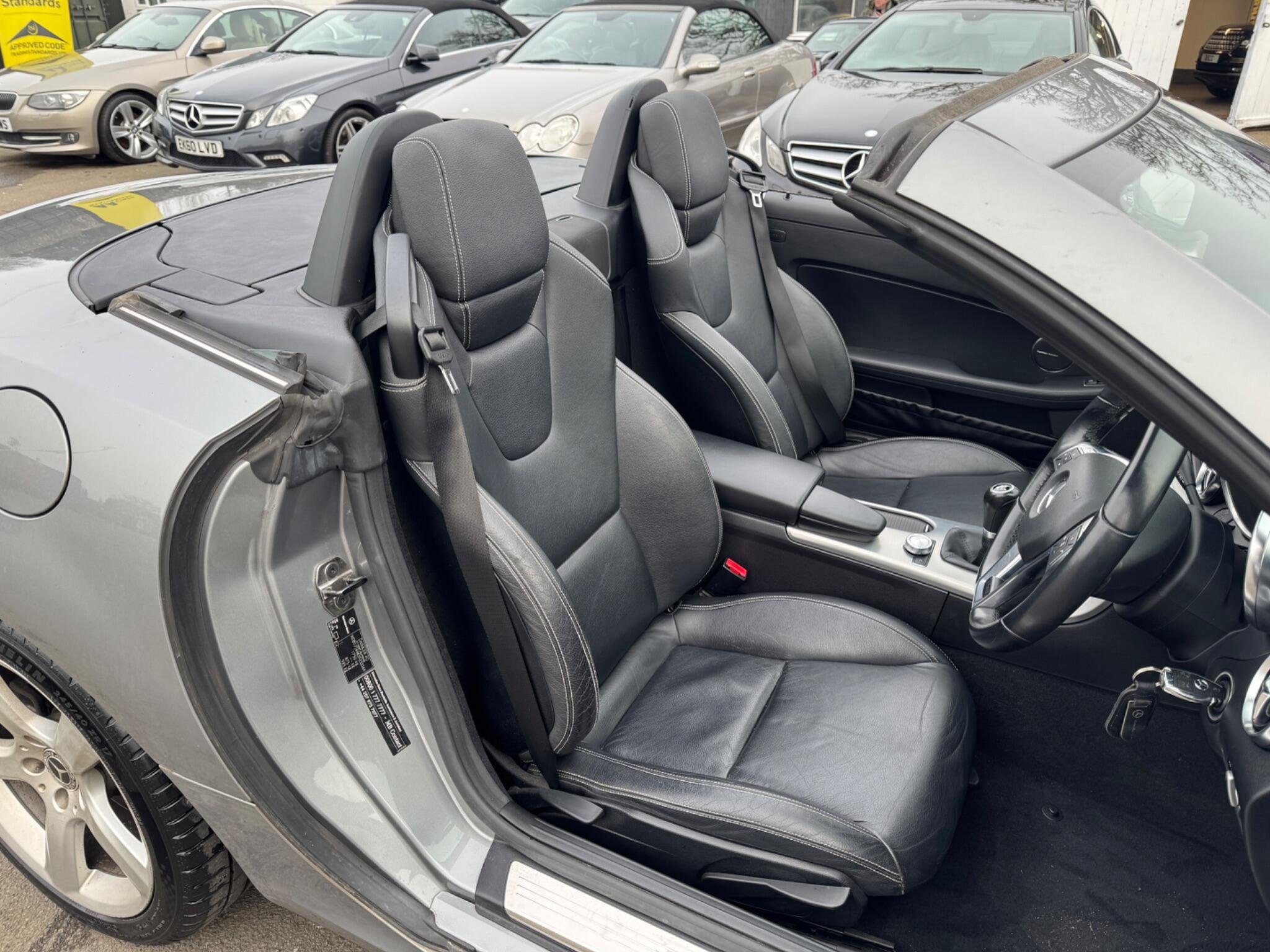 A W172 NEW SHAPE RARE MANUAL ONLY 1 OWNER FROM NEW LAST OWNER 15 YEARS THIS Mercedes-Benz SLK 1.8 SLK200 BlueEfficiency Edition 125 Euro 5 (s/s) 2dr MANUAL GEARBOX, POWER ROOF CONVERTIBLE IT LOOKS AMAZING IN THE BEST COLOUR SILVER GREY METALLIC CONTRASTING BLACK LEATHER SEATS AND ALUMINIUM TRIM TO THE DASH AND DOOR CARDS YES VERY SMART. THE LAST OWNER HAS LOVED AND CHERISHED THE CABRIOLET FOR 15 YEARS & YOU CAN TELL THAT BY THE SUPERB CONDITION THE IS IN YES AND IT'S REALLY GOOD MILEAGE FOR THE YEAR 86K WITH A GOOD MAIN DEALER SERVICE HISTORY. THE ROADSTER HAS A POWER CONVERTIBLE SUNROOF, FACTORY TELEPHONE BLUETOOTH TELEPHONE CONNECTION, STEREO RADIO/CD-PLAYER, REMOTE CONTROL CENTRAL LOCKING SYSTEM, 17" ALLOY WHEELS WITH GOOD TYRES.This 2011 Mercedes Benz SLK 200 Edition 125 MANUAL is a rare find, having been owned by just one person since new. This particular model boasts a 1.8 litre petrol engine and comes with a host of desirable features. You'll appreciate the convenience of Parktronic with Parking Guidance, making manoeuvring effortless. Inside, the Harman Kardon Logic 7 surround sound system delivers an exceptional audio experience, complemented by the COMAND Online system with Media Interface and telephone pre wiring for hands free calls. The stylish interior is further enhanced by roll over bars with brushed aluminium inserts. This SLK 200 Edition 125 offers impressive efficiency, achieving a fuel economy of 42 miles per gallon, which is better than many similar vehicles. It also benefits from low CO2 emissions, making it a more environmentally conscious choice. Furthermore, you'll find the boot space to be surprisingly large, offering practicality for your everyday needs and weekend getaways.