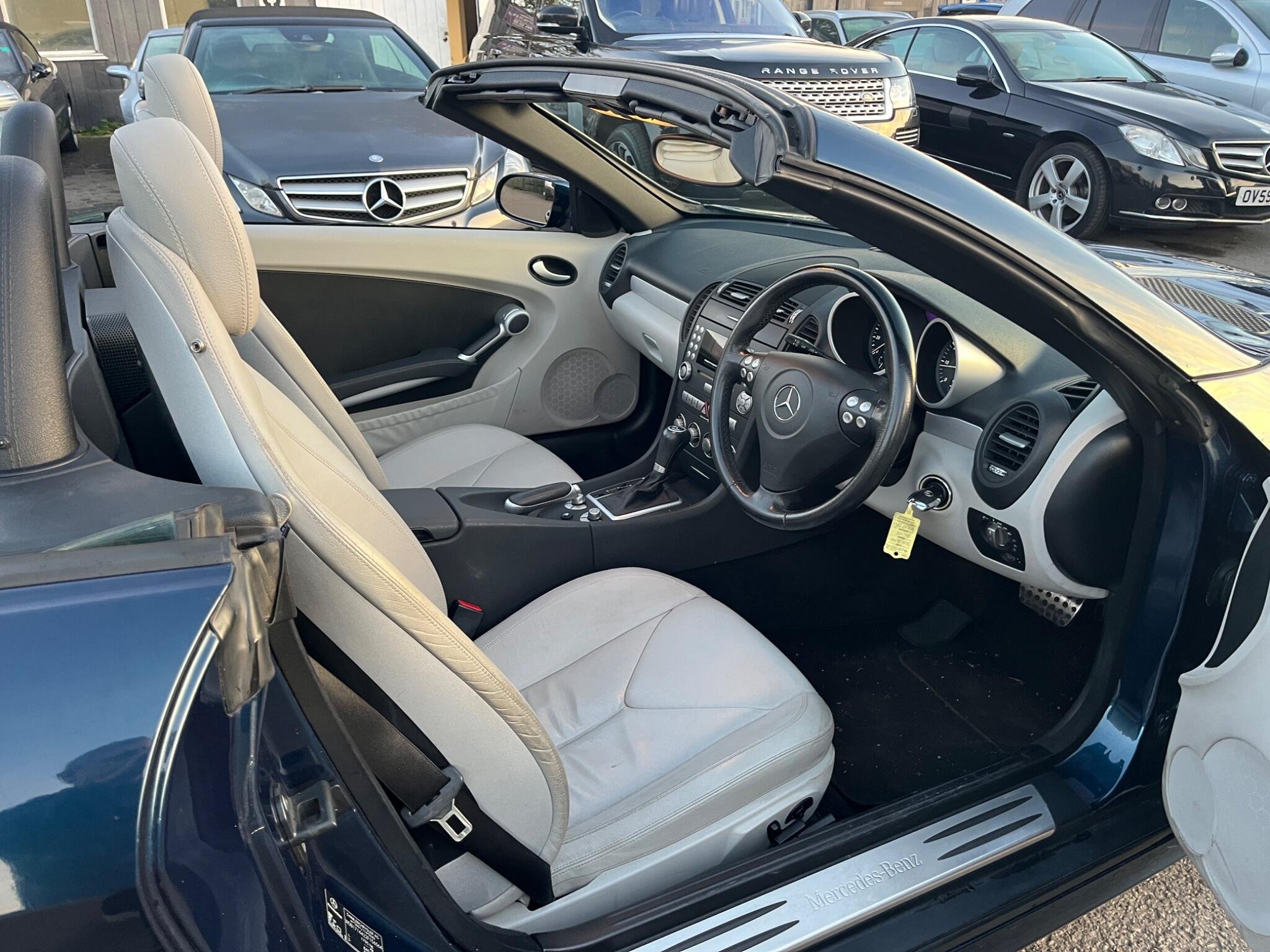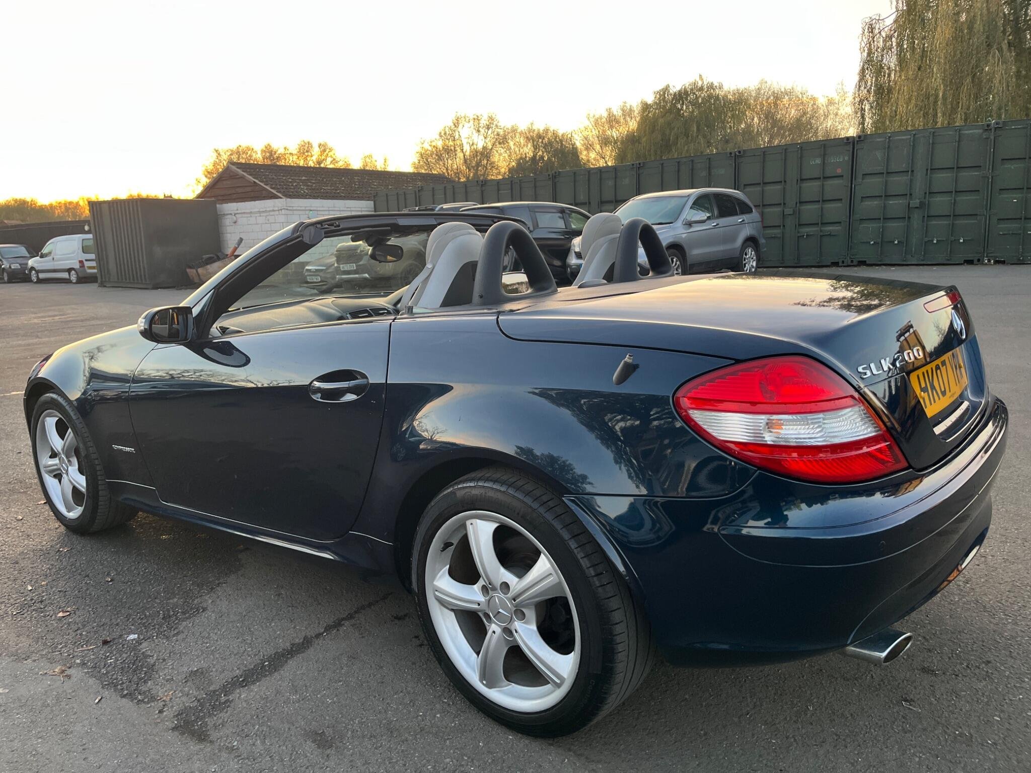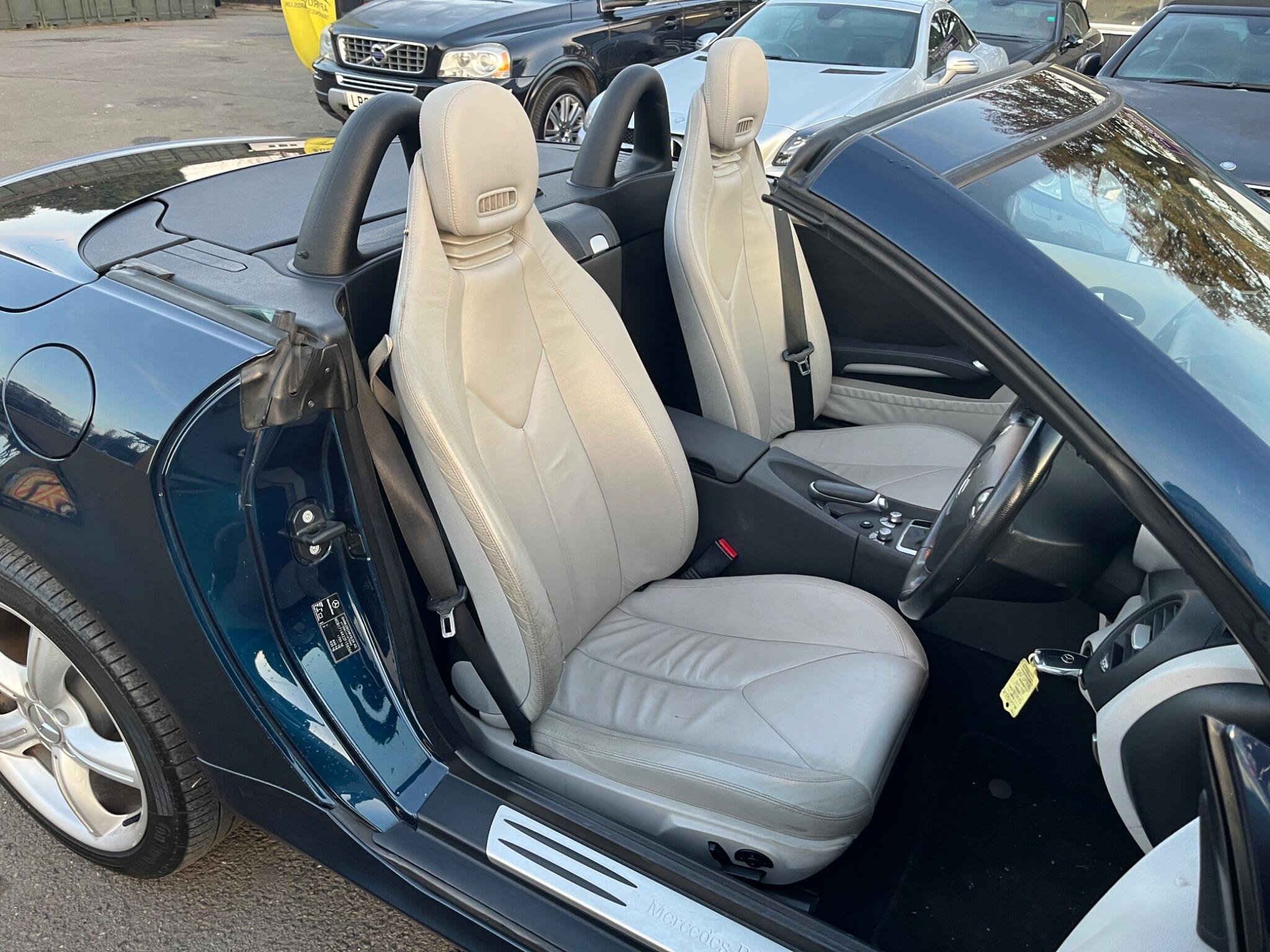 NEW REAR SUBFRAME FITTED ON THIS CAR A COMMON PROBLEM WITH LOTS OF THE MERCEDES MODELS BUILT AROUND 2007 TO 2009 COSTING OVER £1500.00 CHOICE OF 4 SLK'S THE OTHER CAR THE LATER SHAPE MODEL A W172 MODEL 62 REG 43K SILVER BLACK HEATED LEATHER WITH AIR-SCARF £9500..00 THIS Mercedes-Benz SLK 1.8 SLK200K Tiptronic FULLY AUTOMATIC Euro 4 2dr POWER ROOF CONVERTIBLE IT LOOKS AMAZING IN THE BEST COLOUR AZURE BLUE METALLIC CONTRASTING ALPACA PALE GREY LEATHER HEATED SEATS WITH AIR-SCARF (NECK LEVEL HEATING) AND ALUMINIUM TRIM TO THE DASH AND DOOR CARDS YES VERY SMART. THE LAST LADY OWNER HAS LOVED AND CHERISHED THE CABRIOLET FOR YEARS & YOU CAN TELL THAT BY THE SUPERB CONDITION THE IS IN YES AND IT'S REALLY GOOD MILEAGE FOR THE YEAR 78K WITH A GREAT SERVICE HISTORY 14 SERVICES 8 MAIN DEALER. THE ROADSTER HAS A POWER CONVERTIBLE SUNROOF, FACTORY TELEPHONE BLUETOOTH TELEPHONE CONNECTION, AIR SCARF, STEREO RADIO/CD-PLAYER, REMOTE CONTROL CENTRAL LOCKING SYSTEM, 17" TWIN SPOKE ALLOY WHEELS WITH GOOD TYRES. THERE ARE ALL THE BOOKS AND MANUALS Discover this 2007 Mercedes Benz SLK200, a stylish convertible that offers a refined driving experience. Powered by a capable 1.8 litre petrol engine, this model combines performance with efficiency. The SLK is renowned for its comfortable interior and the generous boot space ensures you have ample room for your luggage, making it a practical choice for both weekend getaways and daily use. This Mercedes Benz SLK200 stands out with its thoughtful design and engineering. The inclusion of a large boot space is a notable advantage, offering more versatility than many other vehicles in its class. This feature, combined with the quality associated with the Mercedes Benz brand, makes this SLK a compelling option for those seeking a premium convertible that doesn't compromise on practicality.