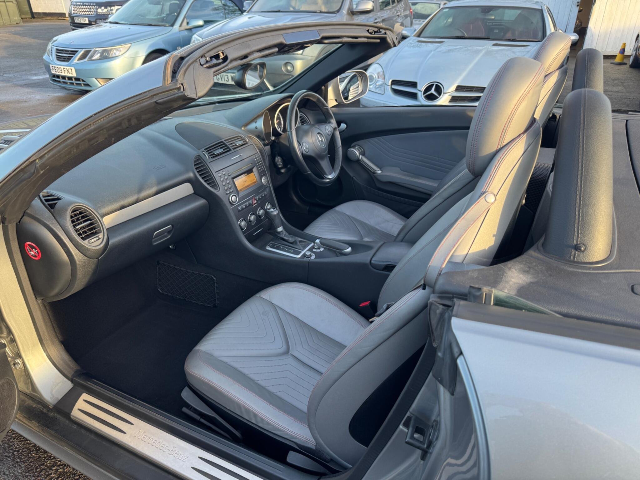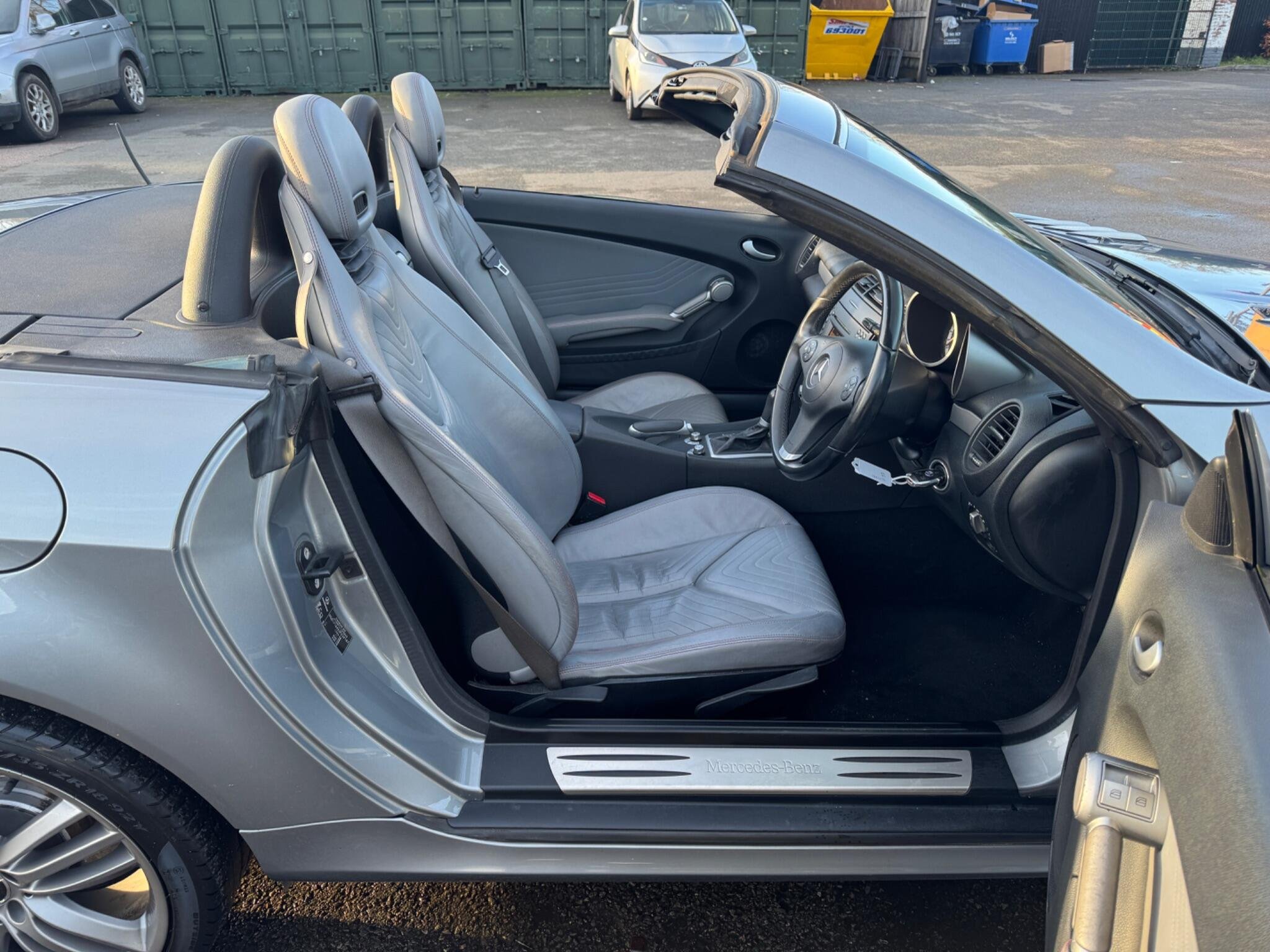 CHOICE OF 4 SLK'S THIS IS THE NUMBER 1 AND QUITE RARE NOWM. THIS Mercedes-Benz SLK 1.8 SLK200K GRAND EDITION Tiptronic Euro 4 2dr FULLY AUTOMATIC Euro 4 2dr POWER ROOF CONVERTIBLE IT LOOKS AMAZING IN THE BEST COLOUR IRIDIUM SILVER GREY METALLIC CONTRASTING ALPACA PALE GREY NAPPA LEATHER HEATED SEATS WITH AIR-SCARF AND INTERIOR AND ALUMINIUM TRIM TO THE DASH AND DOOR CARDS YES VERY SMART. THE LAST LADY OWNER HAS LOVED AND CHERISHED THE CABRIOLET FOR OVER YEARS & YOU CAN TELL THAT BY THE SUPERB CONDITION THE IS IN YES AND IT'S REALLY GOOD MILEAGE FOR THE YEAR 80K WITH A GOOD PART SERVICE HISTORY 13 SERVICES 4 MAIN DEALER. THE GRAND EDITION ROADSTER HAS A POWER CONVERTIBLE HARDTOP SUNROOF, FACTORY TELEPHONE BLUETOOTH TELEPHONE CONNECTION, AIR SCARF, STEREO RADIO/CD-PLAYER, REMOTE CONTROL CENTRAL LOCKING SYSTEM, PARKTRONIC FRONT AND REAR PARKING AID, 18" AMG MULTI SPOKE UPGRADED ALLOY WHEELS WITH GOOD TYRES. THERE ARE TWO SETS OF KEYS & ALL THE BOOKS AND MANUALS This 2010 Mercedes-Benz SLK200K Grand Edition presents a wonderful ownership history, having been cared for by only three previous owners. This particular model, a Grand Edition, is equipped with a responsive 1.8 litre petrol engine, offering a smooth and efficient driving experience. For your comfort and convenience, it features a Bluetooth system allowing for handsfree calls, alongside air conditioning to ensure a pleasant cabin temperature in all conditions. The SLK200K Grand Edition stands out with its thoughtful specification. The inclusion of the Bluetooth system and air conditioning are key highlights that enhance everyday usability, setting it apart from other vehicles in its class. This combination of a well maintained provenance and desirable features makes this Mercedes-Benz SLK a compelling choice for those seeking a stylish and practical convertible. PLEASE NOTE A FULL AND BETTER SET OF PHOTOS TOMORROW AFTERNOON WHEN IT ARRIVES FROM THE MERCEDES MAIN DEALERSHIP.