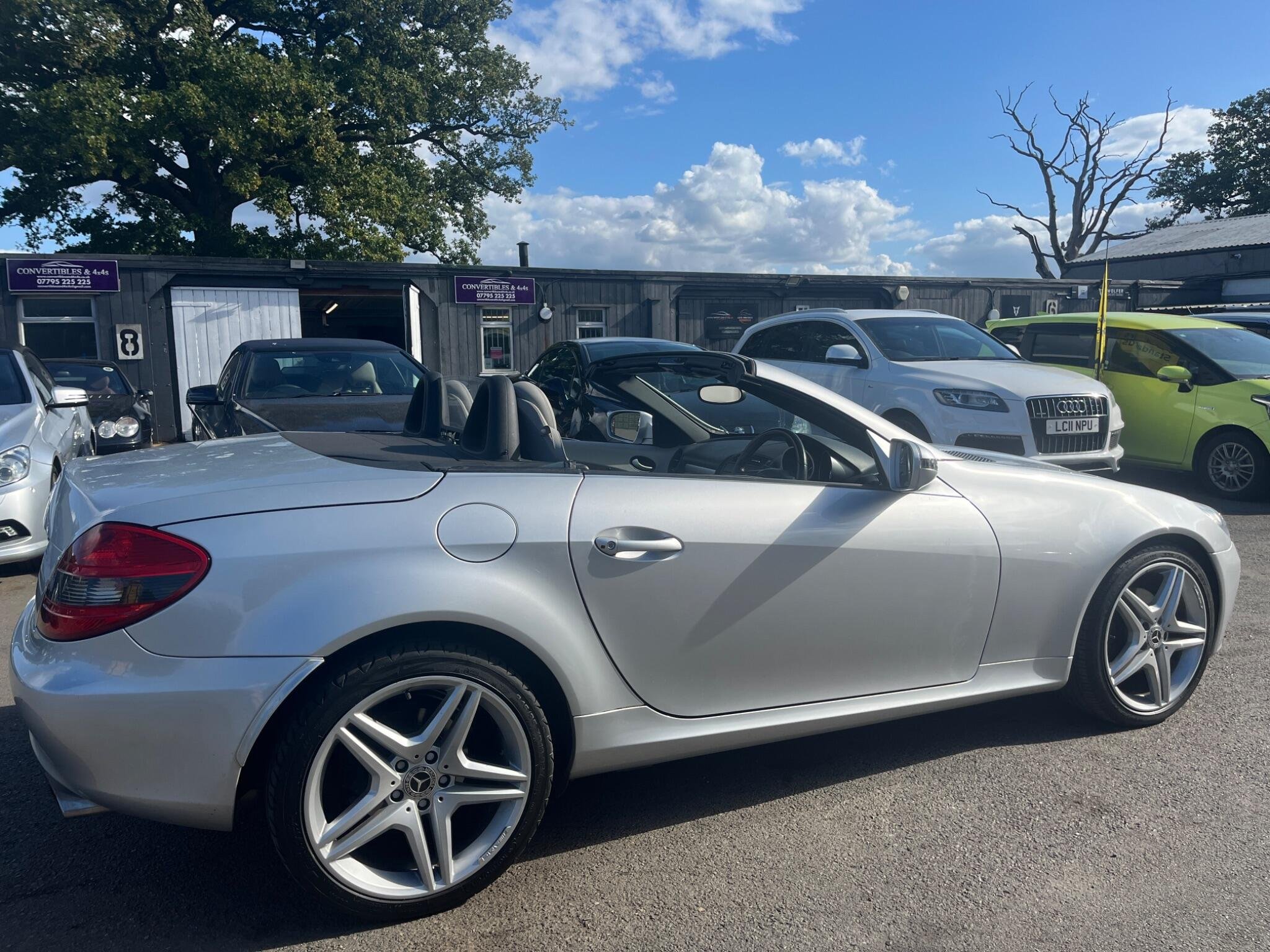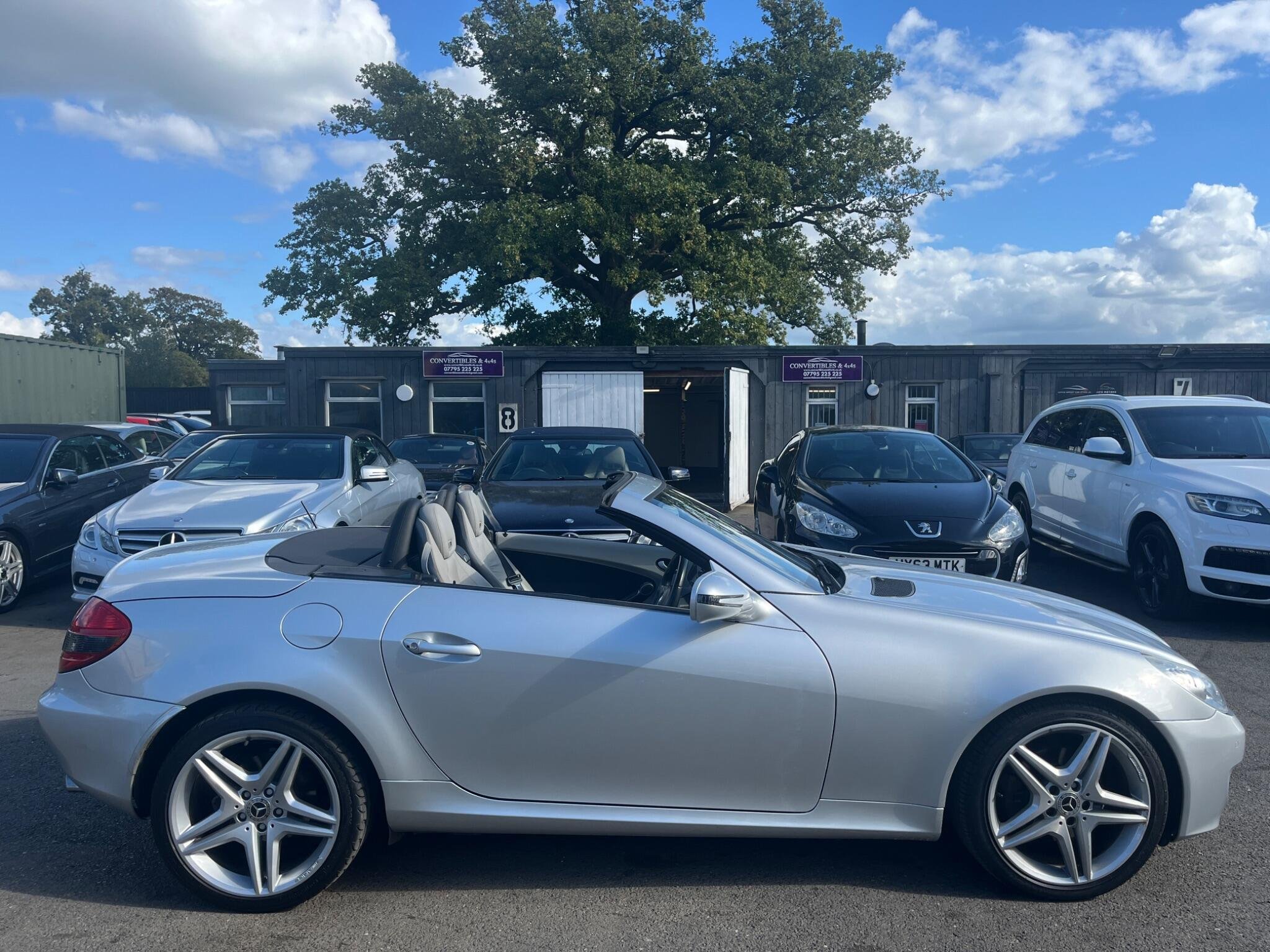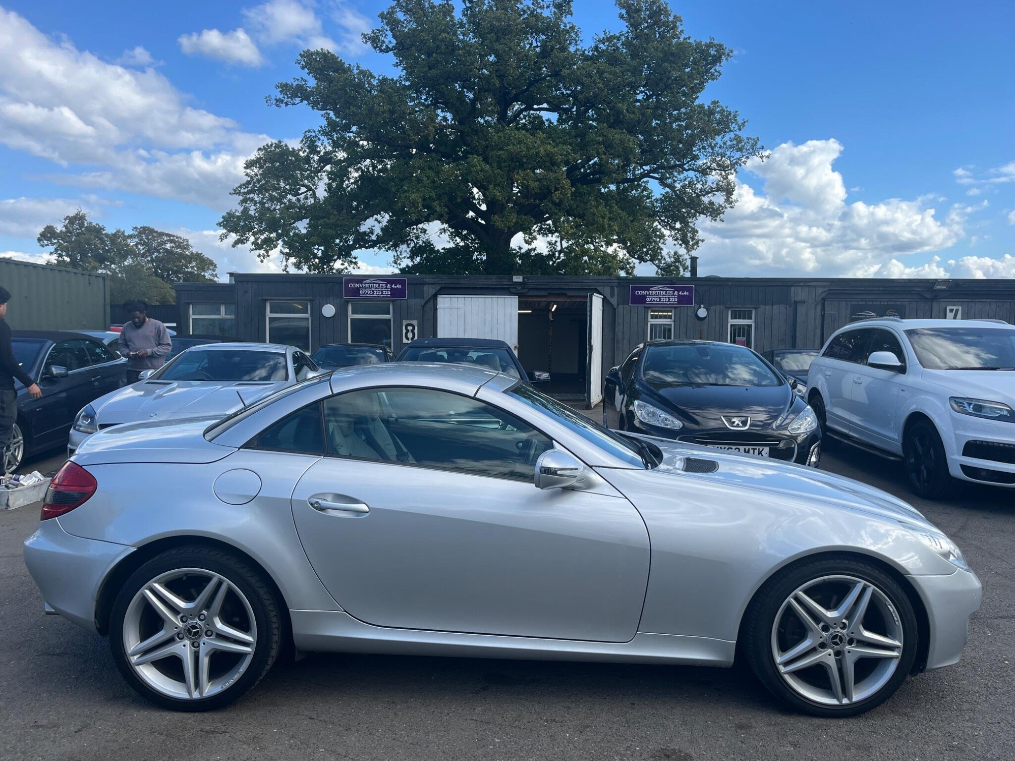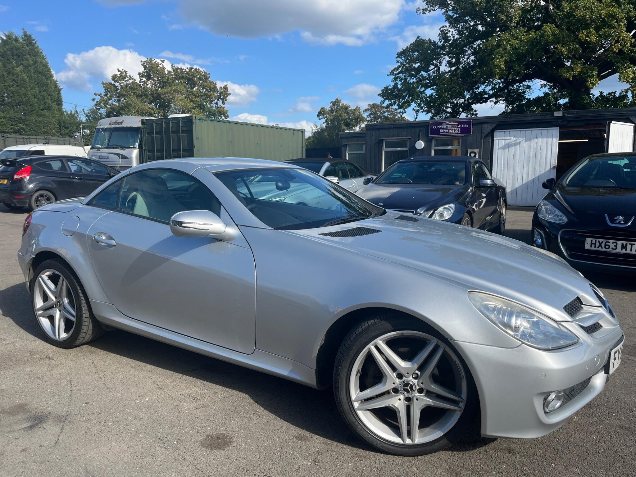 CHOICE OF 2 SLK'S THIS ONE AND THE LATER SHAPE MODEL A 62 REG 43K SILVER BLACK HEATED LEATHER WITH AIR-SCARF £10299. THIS Mercedes-Benz SLK 1.8 SLK200K Tiptronic FULLY AUTOMATIC Euro 4 2dr POWER ROOF CONVERTIBLE IT LOOKS AMAZING IN THE BEST COLOUR SILVER METALLIC CONTRASTING ALPACA PALE GREY LEATHER HEATED SEATS WITH AIR-SCARF AND INTERIOR AND ALUMINIUM TRIM TO THE DASH AND DOOR CARDS YES VERY SMART. THE LAST LADY OWNER HAS LOVED AND CHERISHED THE CABRIOLET FOR OVER 4 YEARS & YOU CAN TELL THAT BY THE SUPERB CONDITION THE IS IN YES AND IT'S REALLY GOOD MILEAGE FOR THE YEAR 65K WITH A GREAT SERVICE HISTORY 11 SERVICES 5 MAIN DEALER. THE ROADSTER HAS A POWER CONVERTIBLE SUNROOF, FACTORY TELEPHONE BLUETOOTH TELEPHONE CONNECTION, AIR SCARF, STEREO RADIO/CD-PLAYER, REMOTE CONTROL CENTRAL LOCKING SYSTEM, 17 INCH ALLOY WHEELS WITH GOOD TYRES. THERE ARE TWO SETS OF KEYS & ALL THE BOOKS AND MANUALS This 2008 Mercedes Benz SLK200K offers a refined driving experience with its 1.8 litre petrol engine. This particular model comes equipped with desirable features such as auto climate control, ensuring a comfortable cabin temperature whatever the weather, and a Bluetooth system for seamless connectivity on the go.With a fuel economy of 35 miles per gallon, this SLK200K presents an efficient choice for those seeking a stylish and capable convertible. The combination of its automatic climate control and Bluetooth system highlights how this vehicle is better equipped for modern driving convenience compared to many similar models. A FULL SET OF PHOTOS TOMORROW