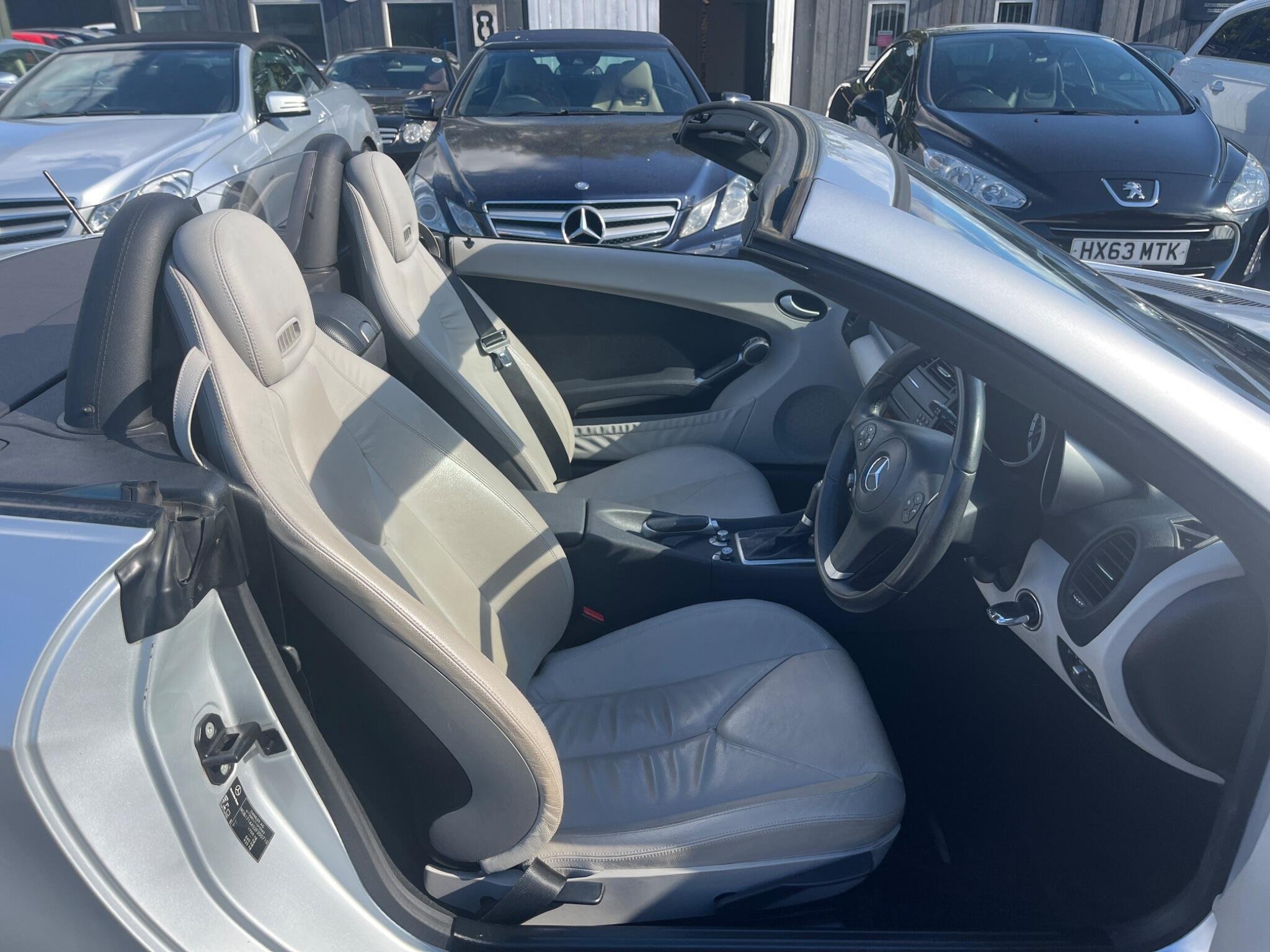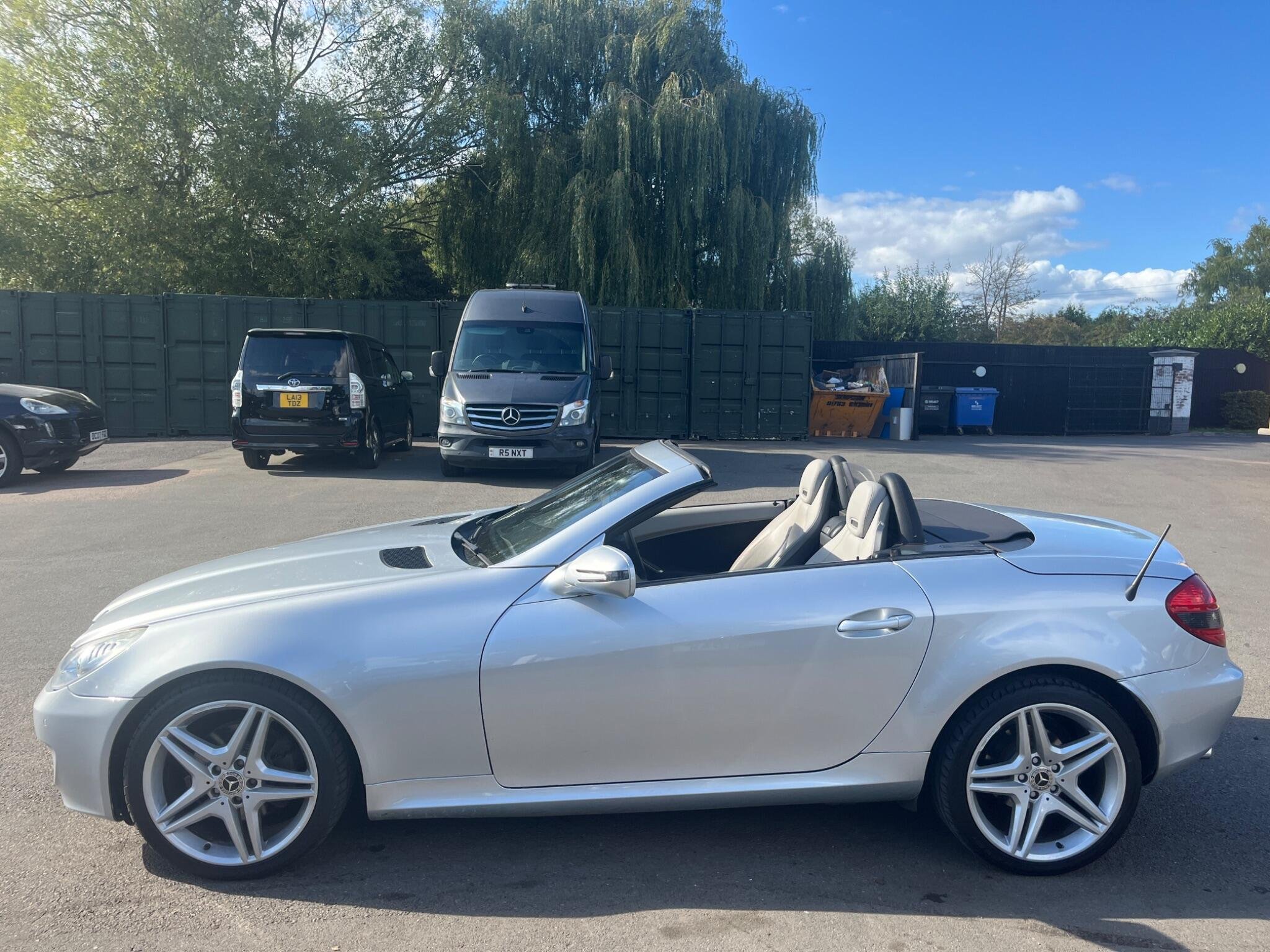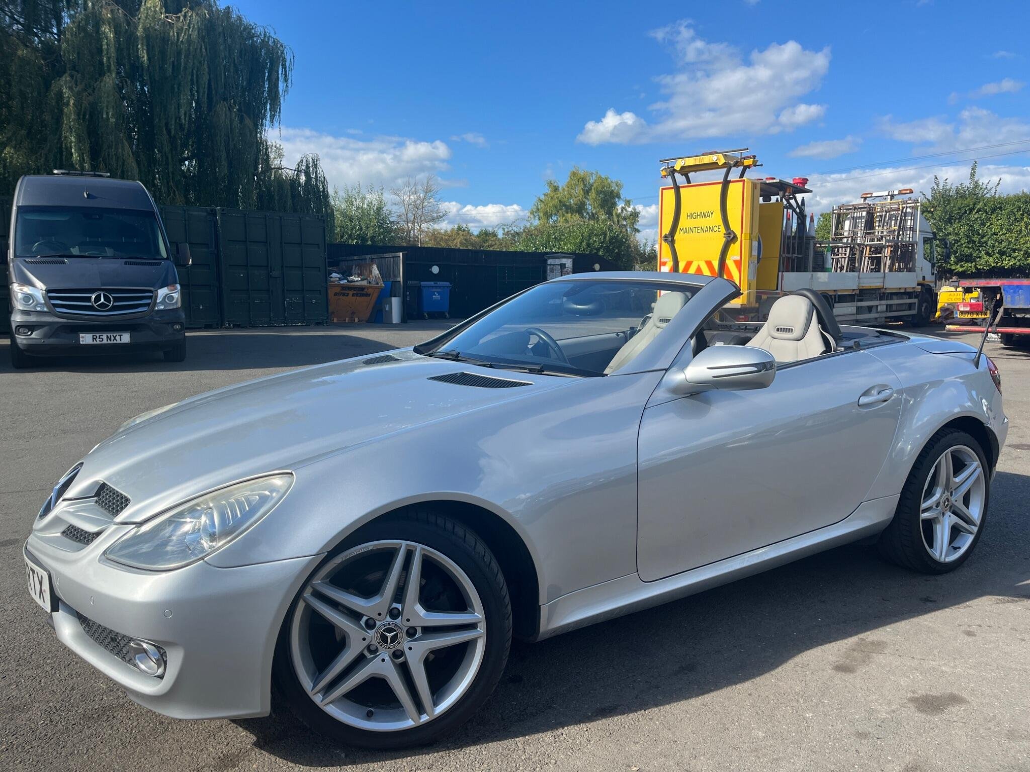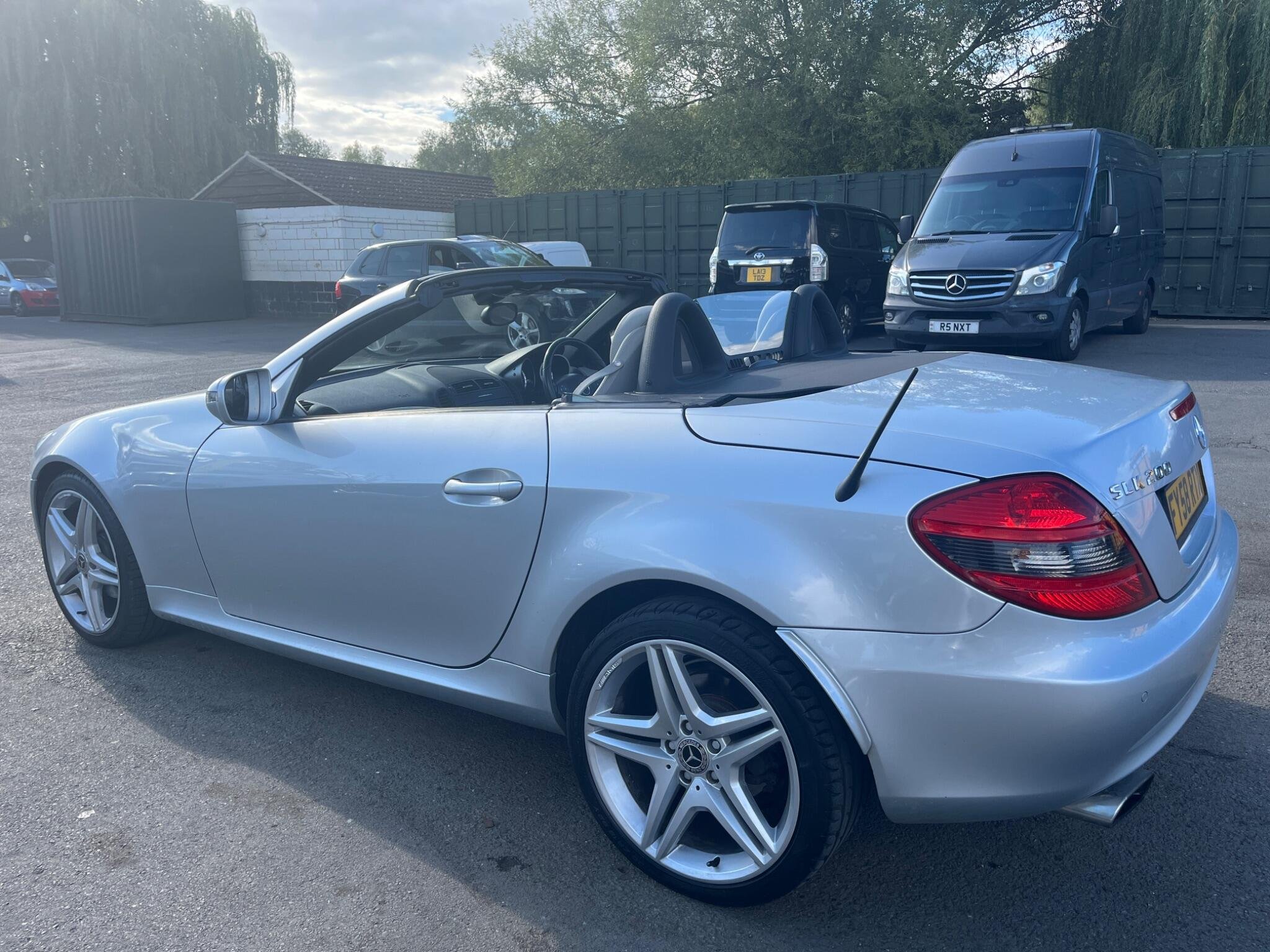 CHOICE OF 2 SLK'S THIS ONE AND THE LATER SHAPE MODEL A 62 REG 43K SILVER BLACK HEATED LEATHER WITH AIR-SCARF £10299. THIS Mercedes-Benz SLK 1.8 SLK200K Tiptronic FULLY AUTOMATIC Euro 4 2dr POWER ROOF CONVERTIBLE IT LOOKS AMAZING IN THE BEST COLOUR SILVER METALLIC CONTRASTING ALPACA PALE GREY LEATHER HEATED SEATS WITH AIR-SCARF AND INTERIOR AND ALUMINIUM TRIM TO THE DASH AND DOOR CARDS YES VERY SMART. THE LAST LADY OWNER HAS LOVED AND CHERISHED THE CABRIOLET FOR OVER 4 YEARS & YOU CAN TELL THAT BY THE SUPERB CONDITION THE IS IN YES AND IT'S REALLY GOOD MILEAGE FOR THE YEAR 65K WITH A GREAT SERVICE HISTORY 11 SERVICES 5 MAIN DEALER. THE ROADSTER HAS A POWER CONVERTIBLE SUNROOF, FACTORY TELEPHONE BLUETOOTH TELEPHONE CONNECTION, AIR SCARF, STEREO RADIO/CD-PLAYER, REMOTE CONTROL CENTRAL LOCKING SYSTEM, 17 INCH ALLOY WHEELS WITH GOOD TYRES. THERE ARE TWO SETS OF KEYS & ALL THE BOOKS AND MANUALS This 2008 Mercedes Benz SLK200K offers a refined driving experience with its 1.8 litre petrol engine. This particular model comes equipped with desirable features such as auto climate control, ensuring a comfortable cabin temperature whatever the weather, and a Bluetooth system for seamless connectivity on the go.With a fuel economy of 35 miles per gallon, this SLK200K presents an efficient choice for those seeking a stylish and capable convertible. The combination of its automatic climate control and Bluetooth system highlights how this vehicle is better equipped for modern driving convenience compared to many similar models. A FULL SET OF PHOTOS TOMORROW