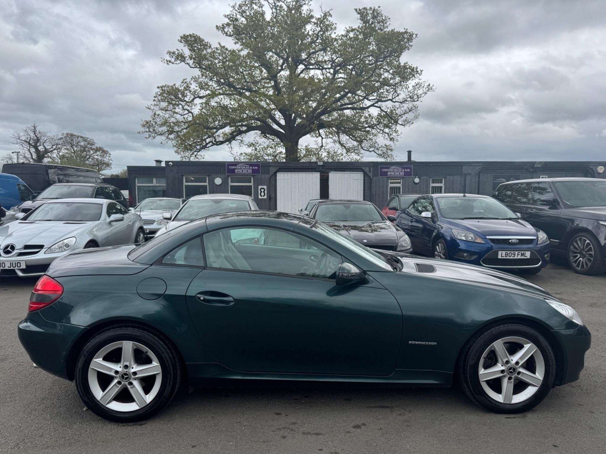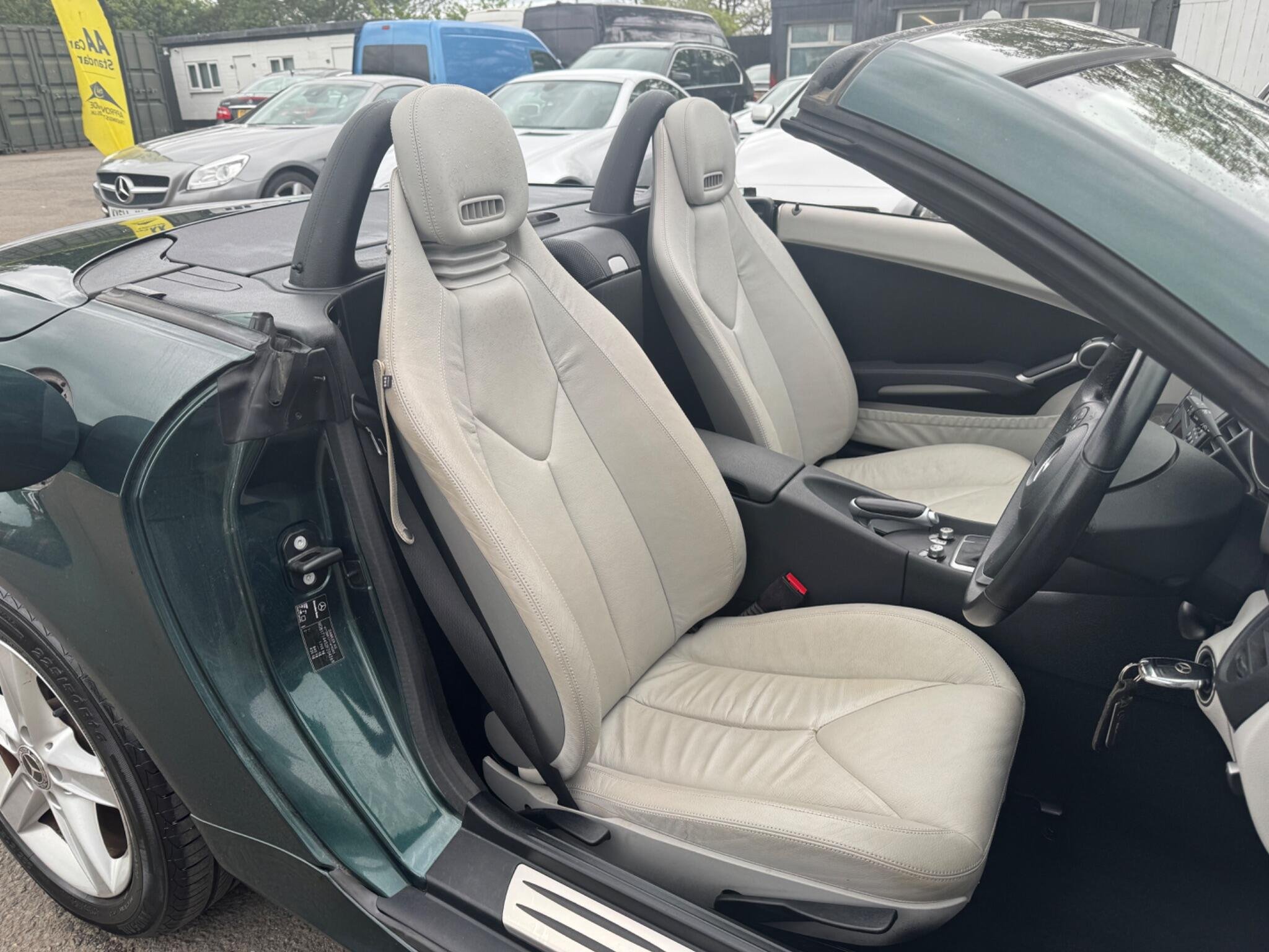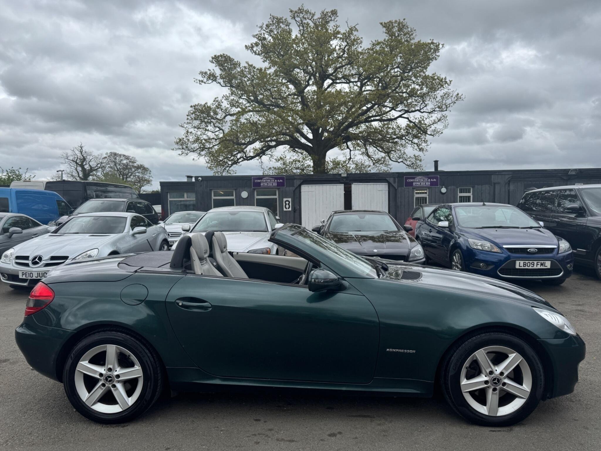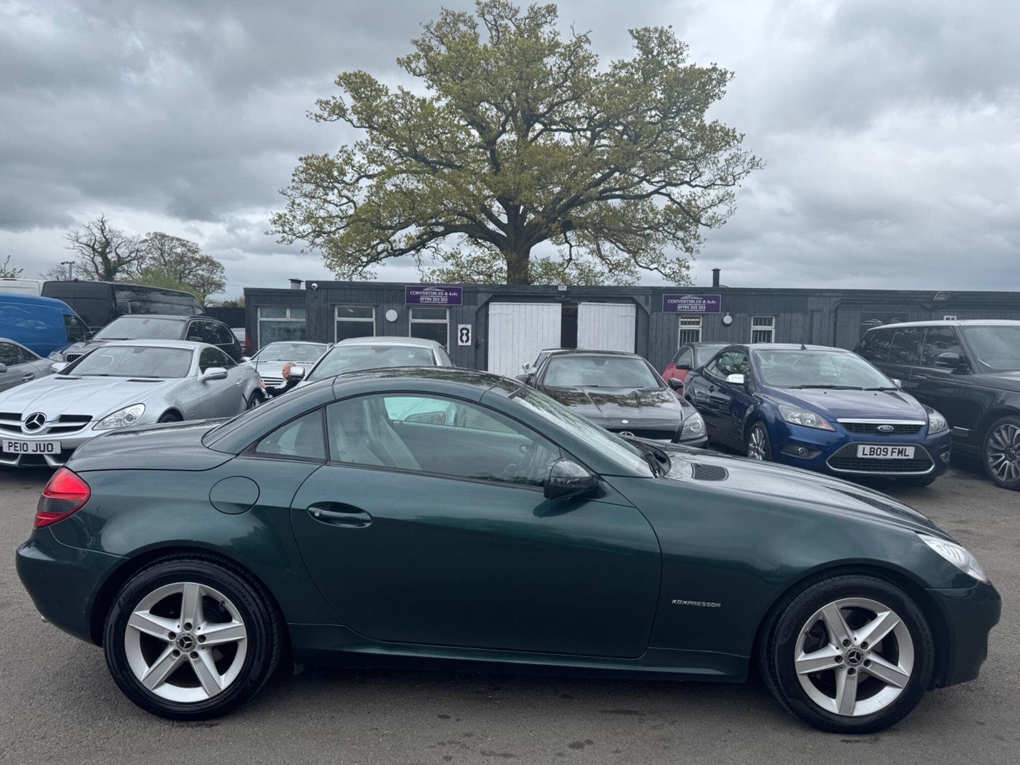 THIS Mercedes-Benz SLK 1.8 SLK200K AUTOMATIC Tiptronic Euro 4 2dr LOOKS AMAZING IN THE SUPERB COLOUR BROOKLANDS RACING GREEN METALLIC CONTRASTING ALPACA PALE GREY LEATHER HEATED SEATS WITH AIR SCARF, INTERIOR AND ALUMINIUM TRIM TO THE DASH AND DOOR CARDS YES VERY SMART. THE LAST OWNER HAS LOVED AND CHERISHED THE CABRIOLET FOR 7 YEARS. THERE IS A PART SERVICE HISTORY 8 OF AND WE WILL SERVICE IT AS SOON AS IT ARRIVE. THE ROADSTER HAS A POWER CONVERTIBLE ROOF, TELEPHONE BLUETOOTH TELEPHONE CONNECTION, DUAL ZONE CLIMATE CONTROL AIR CONDITIONING , ELECTRIC WINDOWS. STEREO RADIO/CD-PLAYER, REMOTE CONTROL CENTRAL LOCKING SYSTEM, 17 INCH ALLOY WHEELS WITH GOOD TYRES. THERE ARE TWO SETS OF KEYS & ALL THE BOOKS AND MANUALS This 2008 Mercedes Benz SLK200K boasts an impressive history, having been owned by only two previous keepers. This well maintained example features a 1.8 litre petrol engine and comes equipped with desirable features such as Auto Climate Control and a Bluetooth System, ensuring comfort and connectivity on every journey. With a fuel economy of 35 miles per gallon, this SLK200K offers an efficient driving experience. Its low CO2 emissions also highlight its environmental consideration compared to similar vehicles. This combination of low ownership, comfort features, and economical running makes it a compelling choice.