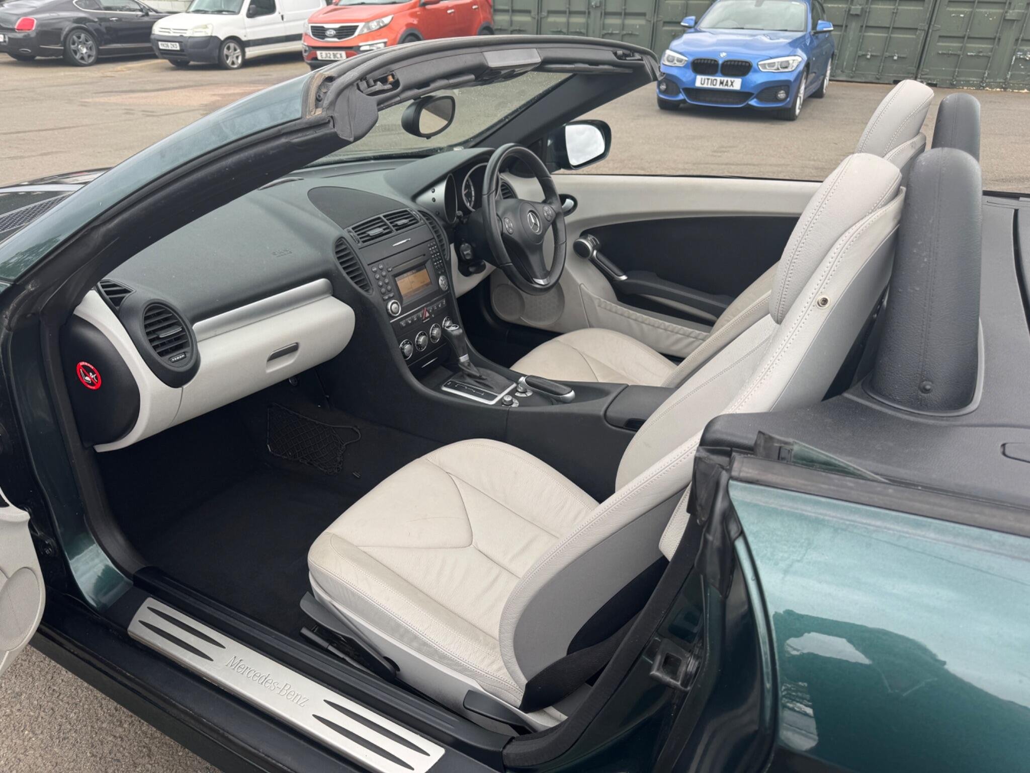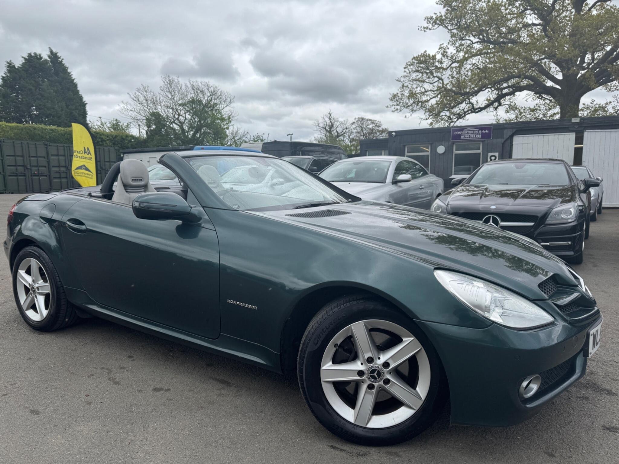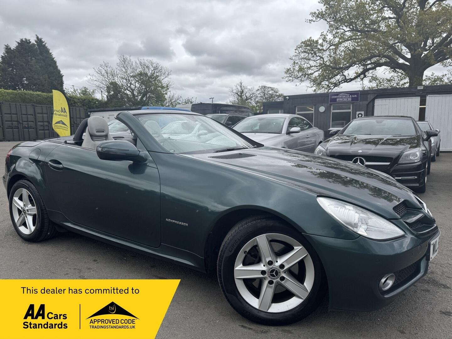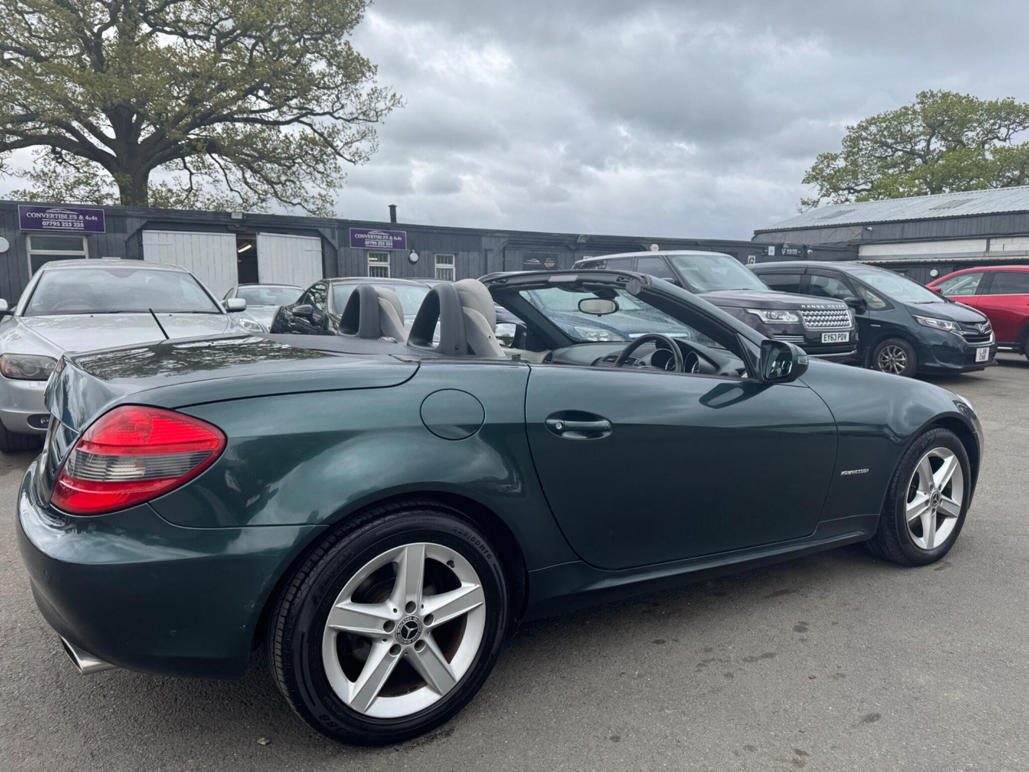 THIS Mercedes-Benz SLK 1.8 SLK200K AUTOMATIC Tiptronic Euro 4 2dr LOOKS AMAZING IN THE SUPERB COLOUR BROOKLANDS RACING GREEN METALLIC CONTRASTING ALPACA PALE GREY LEATHER HEATED SEATS WITH AIR SCARF, INTERIOR AND ALUMINIUM TRIM TO THE DASH AND DOOR CARDS YES VERY SMART. THE LAST OWNER HAS LOVED AND CHERISHED THE CABRIOLET FOR 7 YEARS. THERE IS A PART SERVICE HISTORY 8 OF AND WE WILL SERVICE IT AS SOON AS IT ARRIVE. THE ROADSTER HAS A POWER CONVERTIBLE ROOF, TELEPHONE BLUETOOTH TELEPHONE CONNECTION, DUAL ZONE CLIMATE CONTROL AIR CONDITIONING , ELECTRIC WINDOWS. STEREO RADIO/CD-PLAYER, REMOTE CONTROL CENTRAL LOCKING SYSTEM, 17 INCH ALLOY WHEELS WITH GOOD TYRES. THERE ARE TWO SETS OF KEYS & ALL THE BOOKS AND MANUALS This 2008 Mercedes Benz SLK200K boasts an impressive history, having been owned by only two previous keepers. This well maintained example features a 1.8 litre petrol engine and comes equipped with desirable features such as Auto Climate Control and a Bluetooth System, ensuring comfort and connectivity on every journey. With a fuel economy of 35 miles per gallon, this SLK200K offers an efficient driving experience. Its low CO2 emissions also highlight its environmental consideration compared to similar vehicles. This combination of low ownership, comfort features, and economical running makes it a compelling choice.