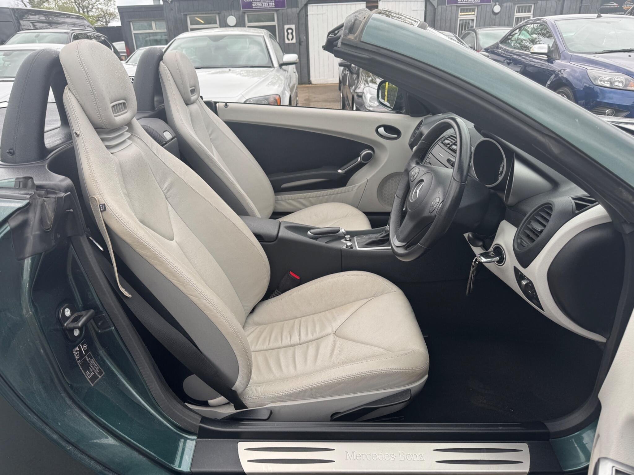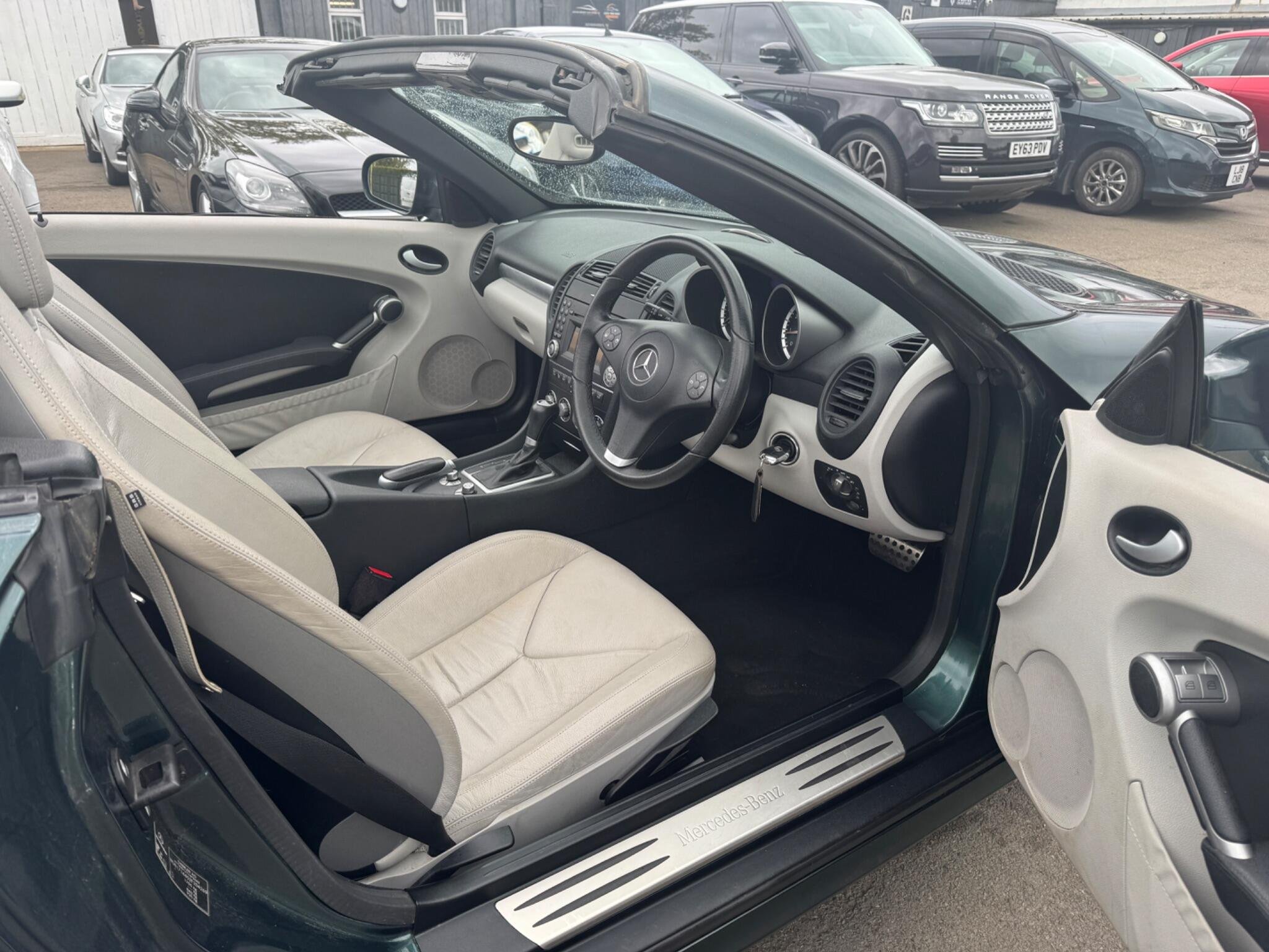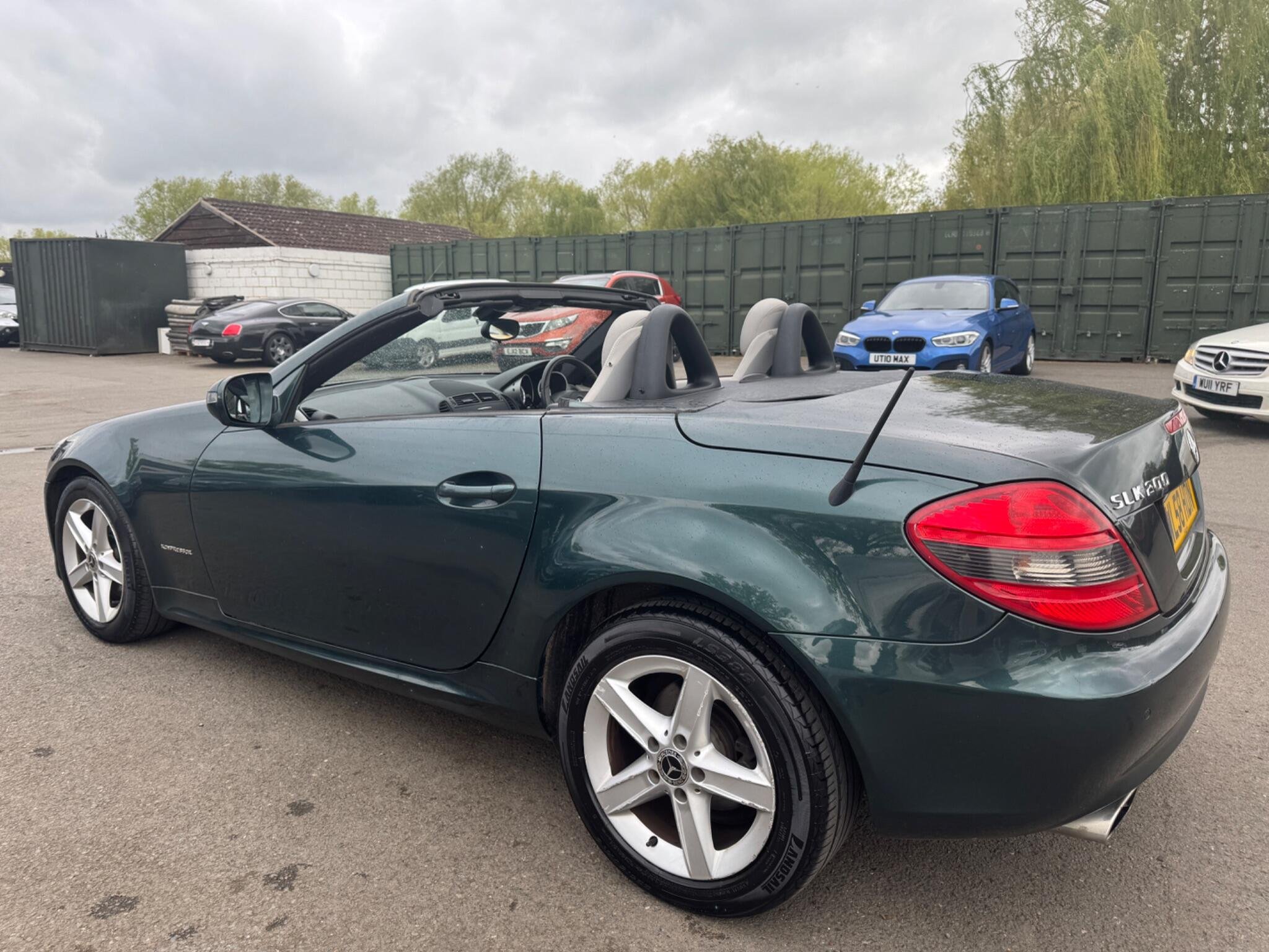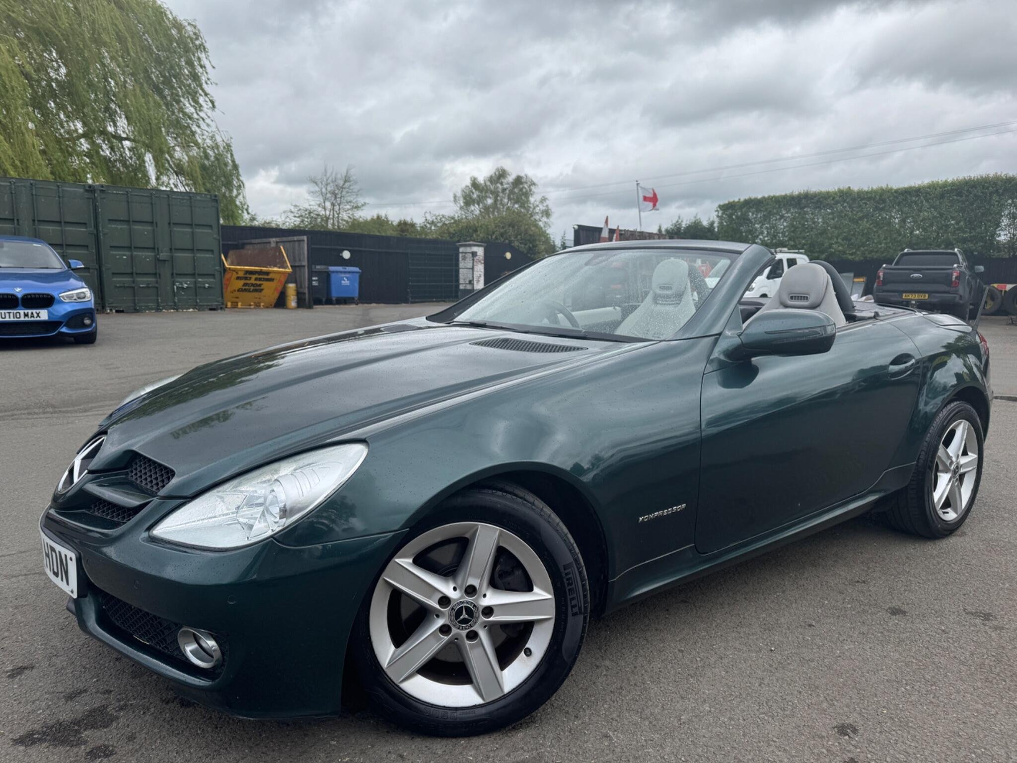 THIS Mercedes-Benz SLK 1.8 SLK200K AUTOMATIC Tiptronic Euro 4 2dr LOOKS AMAZING IN THE SUPERB COLOUR BROOKLANDS RACING GREEN METALLIC CONTRASTING ALPACA PALE GREY LEATHER HEATED SEATS WITH AIR SCARF, INTERIOR AND ALUMINIUM TRIM TO THE DASH AND DOOR CARDS YES VERY SMART. THE LAST OWNER HAS LOVED AND CHERISHED THE CABRIOLET FOR 7 YEARS. THERE IS A PART SERVICE HISTORY 8 OF AND WE WILL SERVICE IT AS SOON AS IT ARRIVE. THE ROADSTER HAS A POWER CONVERTIBLE ROOF, TELEPHONE BLUETOOTH TELEPHONE CONNECTION, DUAL ZONE CLIMATE CONTROL AIR CONDITIONING , ELECTRIC WINDOWS. STEREO RADIO/CD-PLAYER, REMOTE CONTROL CENTRAL LOCKING SYSTEM, 17 INCH ALLOY WHEELS WITH GOOD TYRES. THERE ARE TWO SETS OF KEYS & ALL THE BOOKS AND MANUALS This 2008 Mercedes Benz SLK200K boasts an impressive history, having been owned by only two previous keepers. This well maintained example features a 1.8 litre petrol engine and comes equipped with desirable features such as Auto Climate Control and a Bluetooth System, ensuring comfort and connectivity on every journey. With a fuel economy of 35 miles per gallon, this SLK200K offers an efficient driving experience. Its low CO2 emissions also highlight its environmental consideration compared to similar vehicles. This combination of low ownership, comfort features, and economical running makes it a compelling choice.