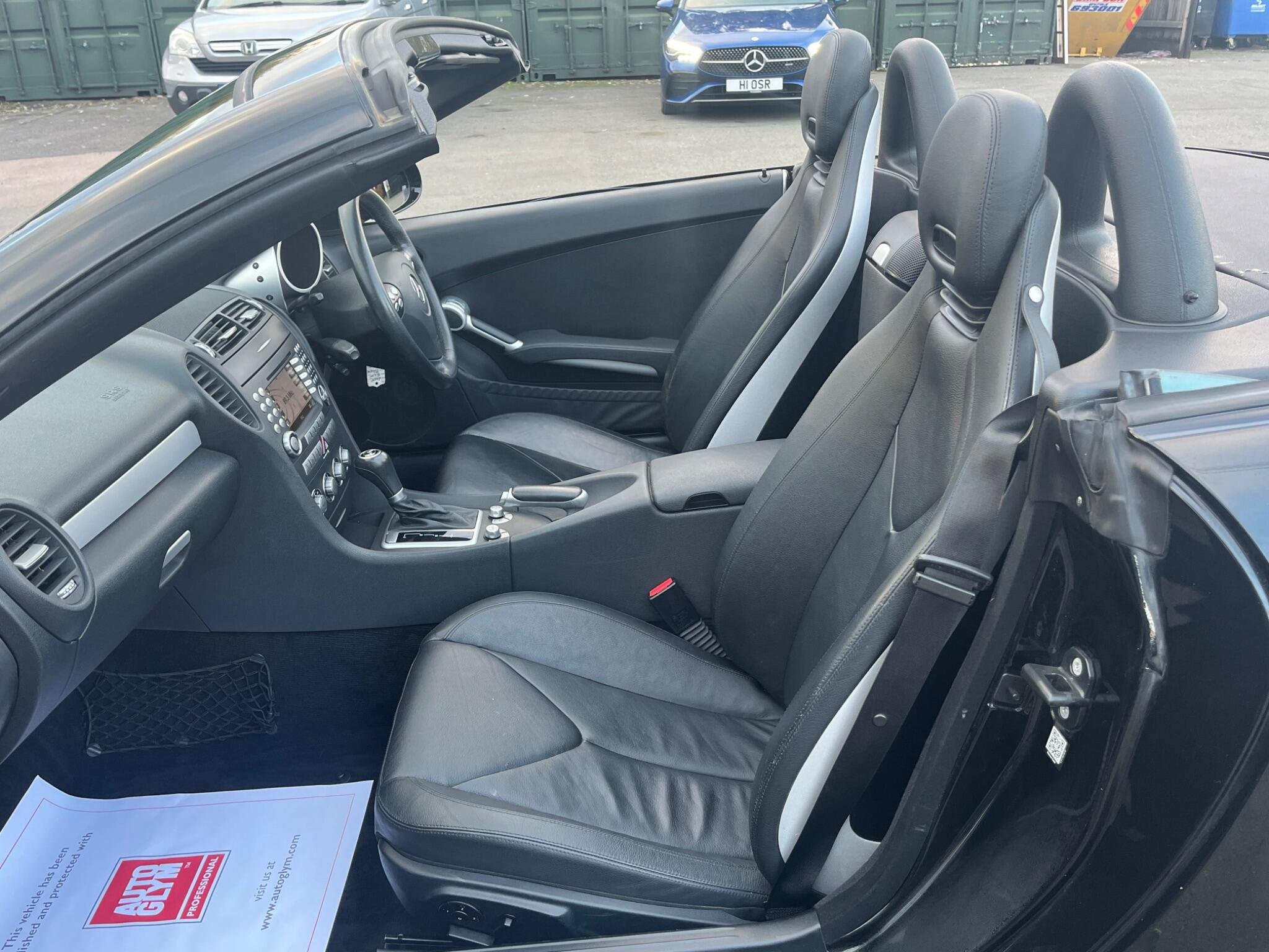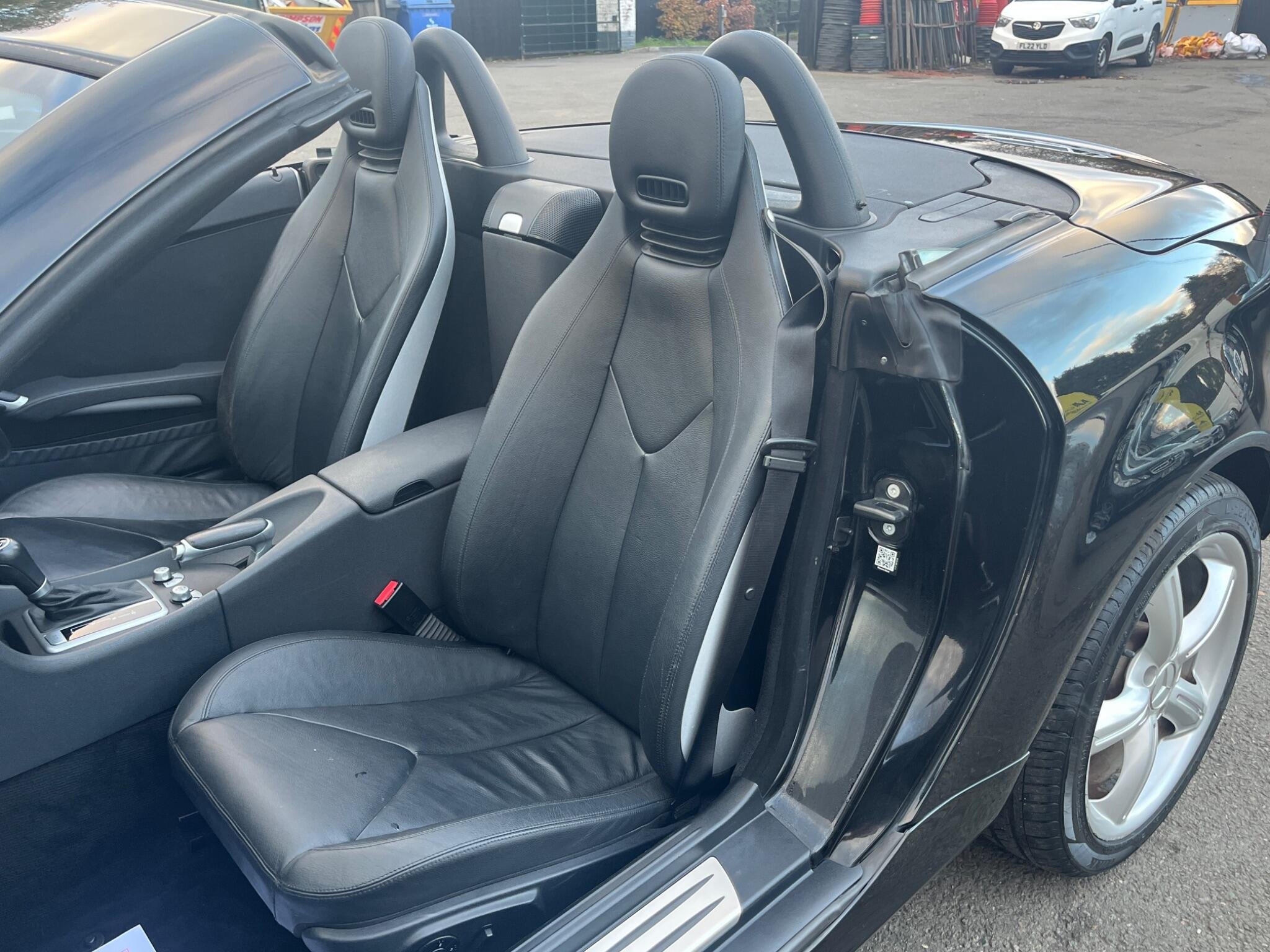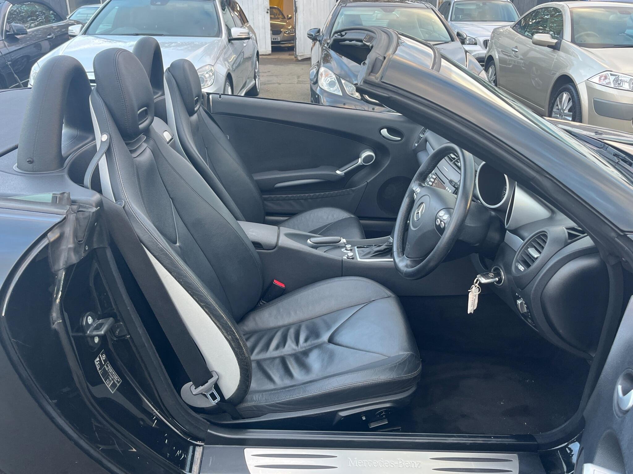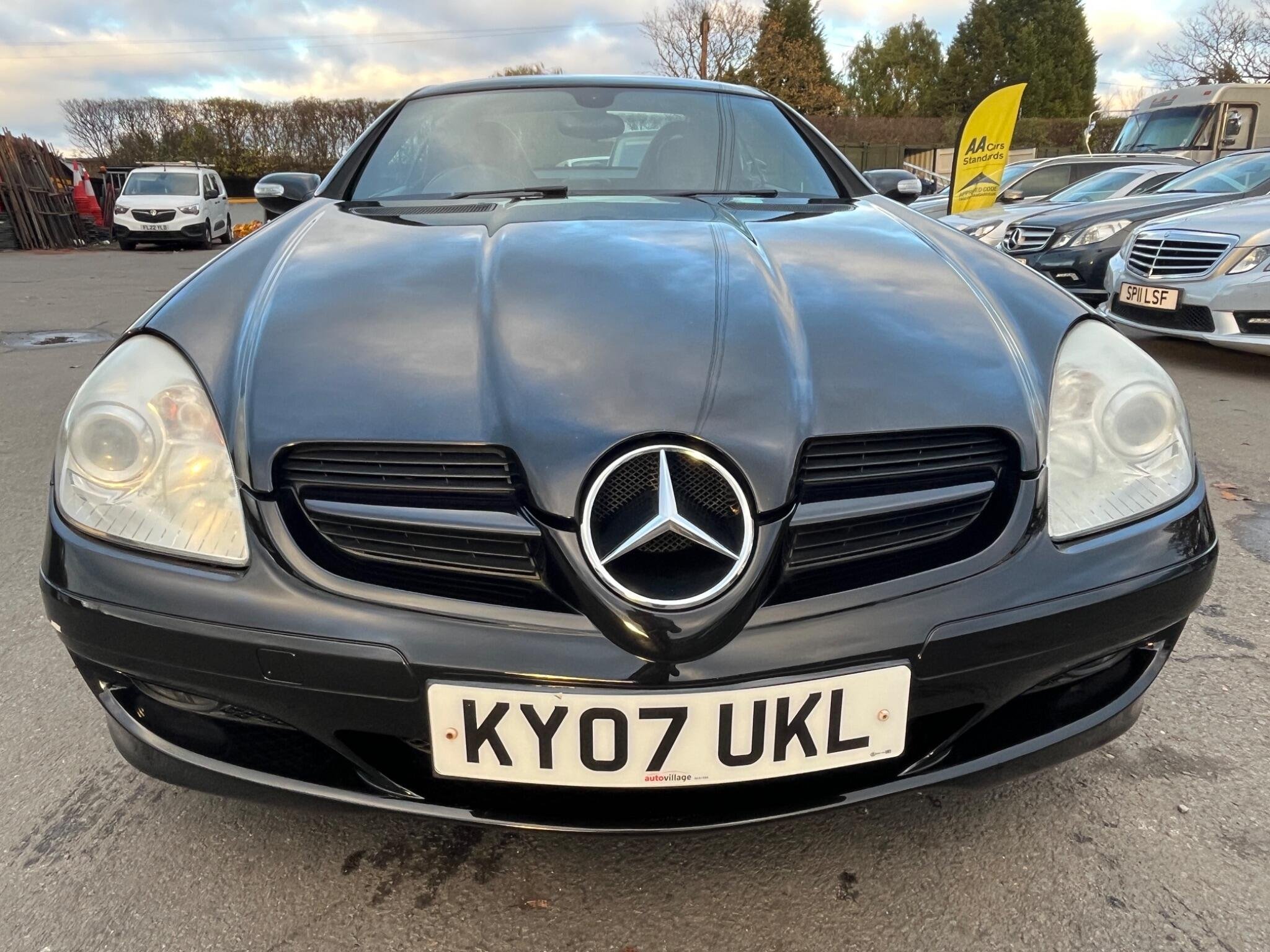 THIS Mercedes-Benz SLK 3.5 SLK350 7G-Tronic 2dr LOOKS AMAZING IN THE BEST COLOUR OBSIDION EBONY METALLIC CONTRASTING EBONY LEATHE ELECTRIC HEATED SEATS WITH AIR-SCARF AND INTERIOR AND ALUMINIUM TRIM TO THE DASH AND DOOR CARDS YES VERY SMART. THE LAST LADY OWNER HAS LOVED AND CHERISHED THE CABRIOLET FOR YEARS & YOU CAN TELL THAT BY THE SUPERB CONDITION THE IS IN YES AND IT'S REALLY GOOD MILEAGE FOR THE YEAR 80K WITH A GREAT SERVICE AS SOON AS IT ARRIVES AND A NEW MOT LAST MONTH. THE ROADSTER HAS A POWER CONVERTIBLE SUNROOF, FACTORY COMAND MERCEDES NAME FOR SAT-NAV, TELEPHONE BLUETOOTH TELEPHONE CONNECTION, AIR SCARF, STEREO RADIO/CD-PLAYER, REMOTE CONTROL CENTRAL LOCKING SYSTEM, 17I NCH AMG ALLOY WHEELS WITH GOOD TYRES. THERE ARE TWO SETS OF KEYS & ALL THE BOOKS AND MANUALS. A FULL SET OF PHOTOS AS SOON AS IT ARRIVES FROM THE MERCEDES MAIN DEALERSHIP IN THE NEXT DAY OR SO Discover this 2007 Mercedes Benz SLK350, a remarkable example of German engineering. This stylish convertible boasts a powerful 3.5 litre petrol engine, offering an exhilarating driving experience. Its registration year of 2007 places it in a desirable category for many enthusiasts. The SLK350 stands out with its impressive acceleration, reaching 0 to 60 miles per hour in just 5.5 seconds, a performance that truly sets it apart. Furthermore, this model benefits from a low insurance group, making it an economical choice for many drivers. You'll also appreciate the surprisingly large boot space, offering practicality often not found in vehicles of this type.