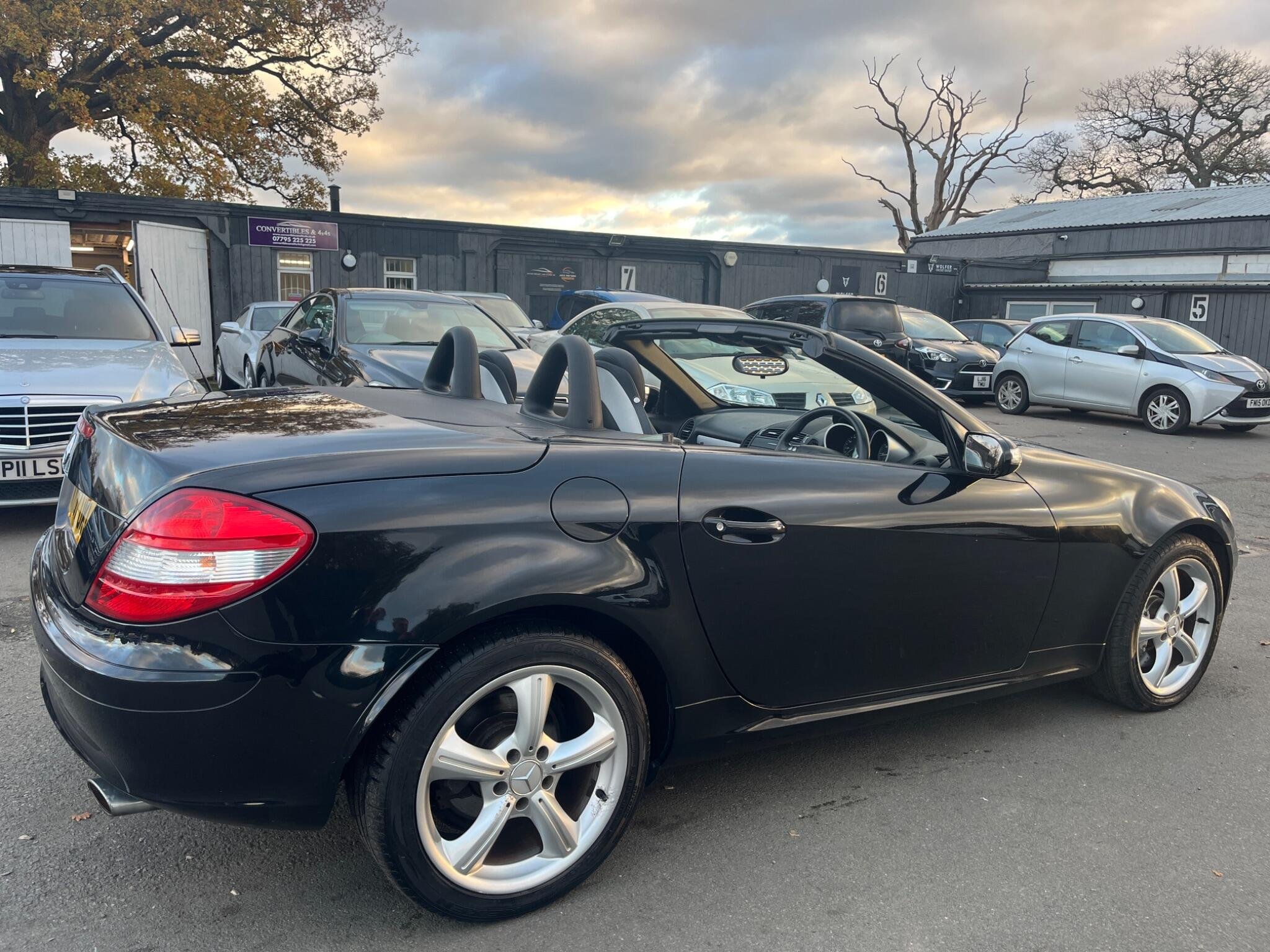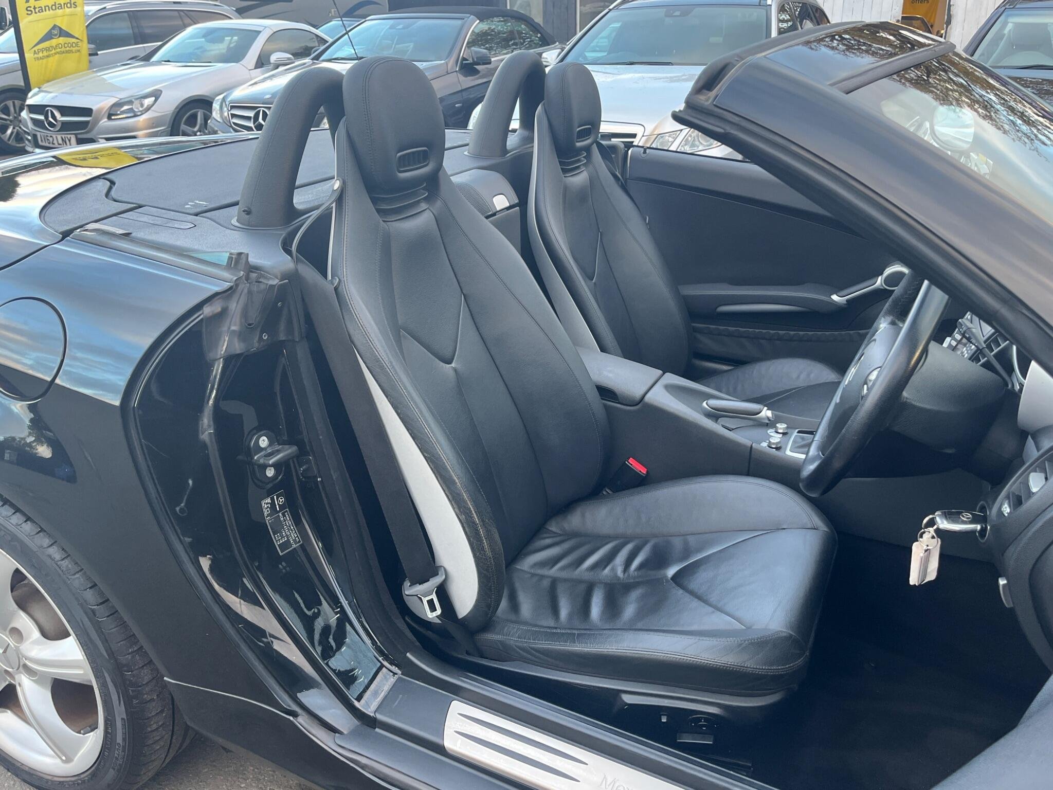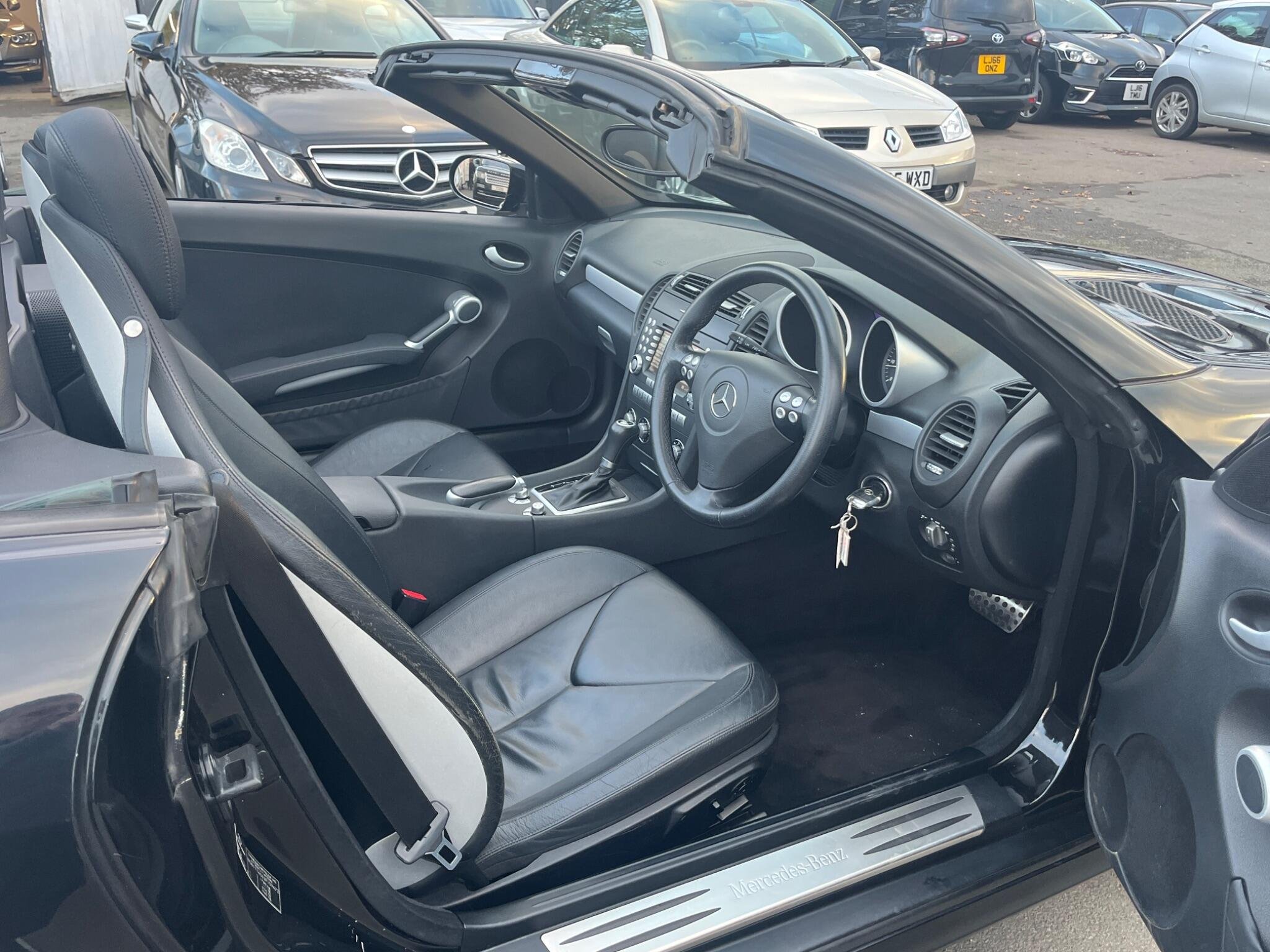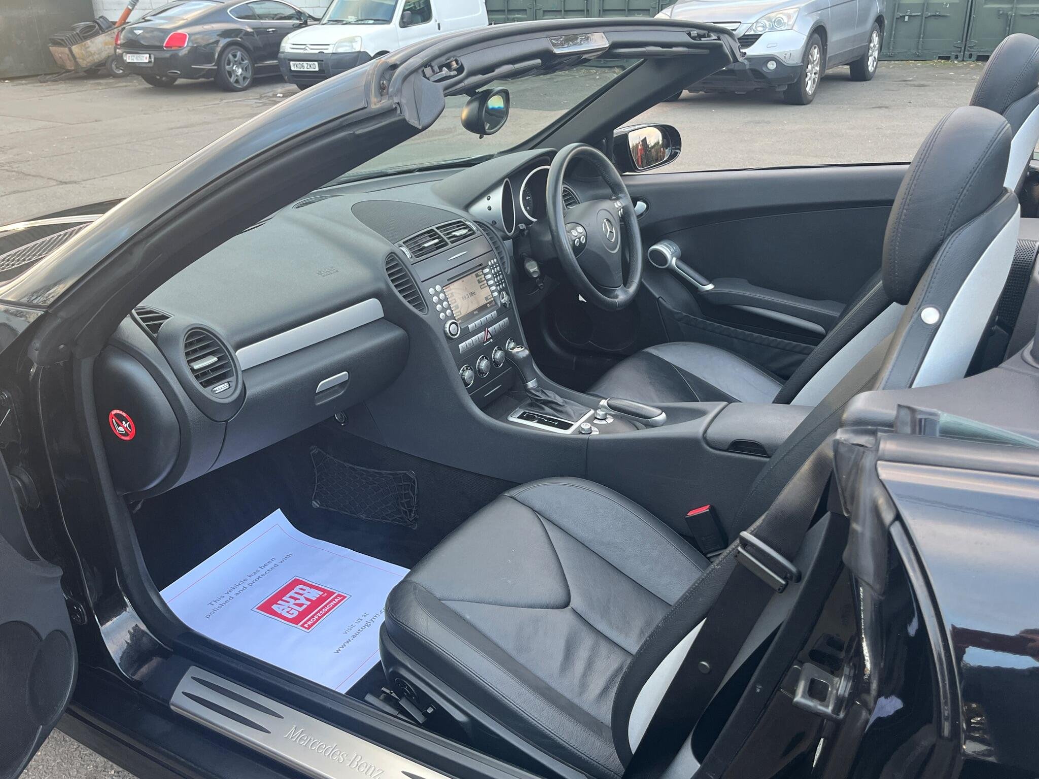 THIS Mercedes-Benz SLK 3.5 SLK350 7G-Tronic 2dr LOOKS AMAZING IN THE BEST COLOUR OBSIDION EBONY METALLIC CONTRASTING EBONY LEATHE ELECTRIC HEATED SEATS WITH AIR-SCARF AND INTERIOR AND ALUMINIUM TRIM TO THE DASH AND DOOR CARDS YES VERY SMART. THE LAST LADY OWNER HAS LOVED AND CHERISHED THE CABRIOLET FOR YEARS & YOU CAN TELL THAT BY THE SUPERB CONDITION THE IS IN YES AND IT'S REALLY GOOD MILEAGE FOR THE YEAR 80K WITH A GREAT SERVICE AS SOON AS IT ARRIVES AND A NEW MOT LAST MONTH. THE ROADSTER HAS A POWER CONVERTIBLE SUNROOF, FACTORY COMAND MERCEDES NAME FOR SAT-NAV, TELEPHONE BLUETOOTH TELEPHONE CONNECTION, AIR SCARF, STEREO RADIO/CD-PLAYER, REMOTE CONTROL CENTRAL LOCKING SYSTEM, 17I NCH AMG ALLOY WHEELS WITH GOOD TYRES. THERE ARE TWO SETS OF KEYS & ALL THE BOOKS AND MANUALS. A FULL SET OF PHOTOS AS SOON AS IT ARRIVES FROM THE MERCEDES MAIN DEALERSHIP IN THE NEXT DAY OR SO Discover this 2007 Mercedes Benz SLK350, a remarkable example of German engineering. This stylish convertible boasts a powerful 3.5 litre petrol engine, offering an exhilarating driving experience. Its registration year of 2007 places it in a desirable category for many enthusiasts. The SLK350 stands out with its impressive acceleration, reaching 0 to 60 miles per hour in just 5.5 seconds, a performance that truly sets it apart. Furthermore, this model benefits from a low insurance group, making it an economical choice for many drivers. You'll also appreciate the surprisingly large boot space, offering practicality often not found in vehicles of this type.