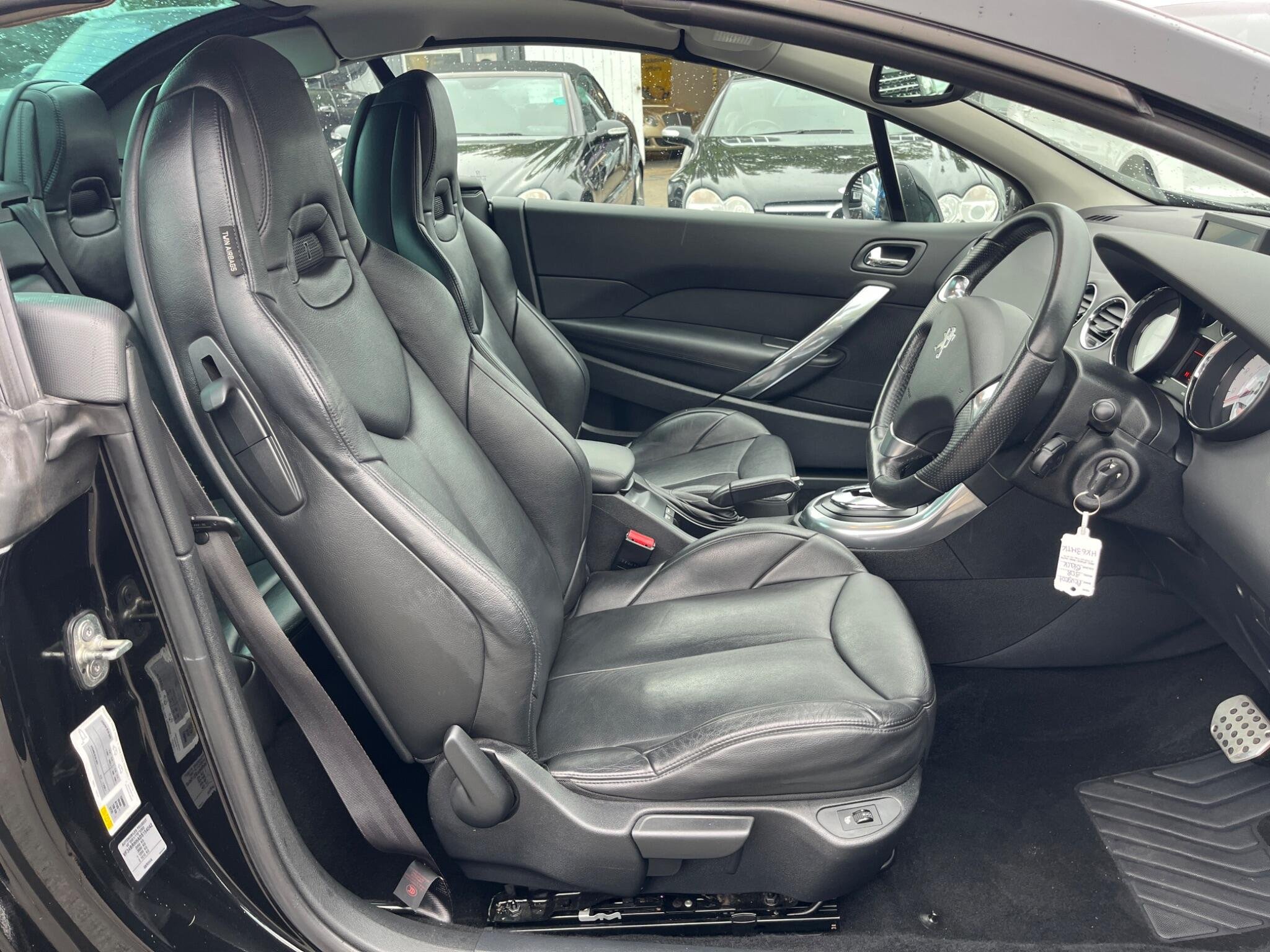 THIS Peugeot 308 CC 2.0 HDi Allure AUTOMATIC Euro 5 2dr 4 SEATER LOOKS AMAZING IN EBONY AND CONTRASTING EBONY FULL LEATHER HEATED SEATS WITH AIR SCARF neck level heating AND INTERIOR and Black Polished PIANO WOOD TRIM TO THE DASH & DOOR CARDS YES VERY SMART. THE LAST LOCAL OWNER HAS LOVED THE CAR S & YOU CAN TELL THAT BY THE SUPERB CONDITION THE CONVERTIBLE IS IN YES AND IT'S REALLY LOW MILEAGE FOR THE YEAR 51K WITH GOOD SERVICE HISTORY .11 SERVICES IN THE SERVICE BOOKS & A RECENT MOT THIS WEEK WITH NO ADVISES. IT COMES WITH SOME FACTORY EXTRAS, STEREO RADIO WITH CD-MULTI-PLAYER, FACTORY WIDE SCREEN COLOUR SAT-NAV WITH HEADS UP DISPLAY, BLUE TOOTH TELEPHONE PREPARATION, FRONT AND REAR PARKING AID & COLOUR REVERSE CAMERA CLIMATE CONTROL AIR-CONDITIONING, REMOTE CONTROL CENTRAL LOCKING, 18 ALLOY WHEELS WITH GOOD TYRES ALL ROUND. THERE ARE TWO SETS OF REMOTE CONTROL KEYS AND ALL THE BOOKS AND MANUALS, Discover this 2013 Peugeot 308 CC HDi Allure, a stylish convertible with remarkably low mileage for its age, having covered just 51,455 miles. This well maintained example boasts a clear vehicle history check, offering peace of mind. Inside, you'll find a host of desirable features designed for comfort and convenience, including the Peugeot Connect Media Navigation with 3-D Colour, an electric seat pack, and heated front seats. The automatic dual zone climate control ensures a pleasant cabin temperature for all occupants, while the rear parking aid makes manoeuvring easier. This particular Peugeot 308 CC stands out with its low insurance group, making it an economical choice for many drivers. Furthermore, its generous boot space provides practicality for everyday use and weekend getaways, setting it apart from many other vehicles in its class. The combination of its efficient 2.0L diesel engine, comfortable interior, and thoughtful features makes this 308 CC a compelling option for those seeking a refined and enjoyable driving experience.