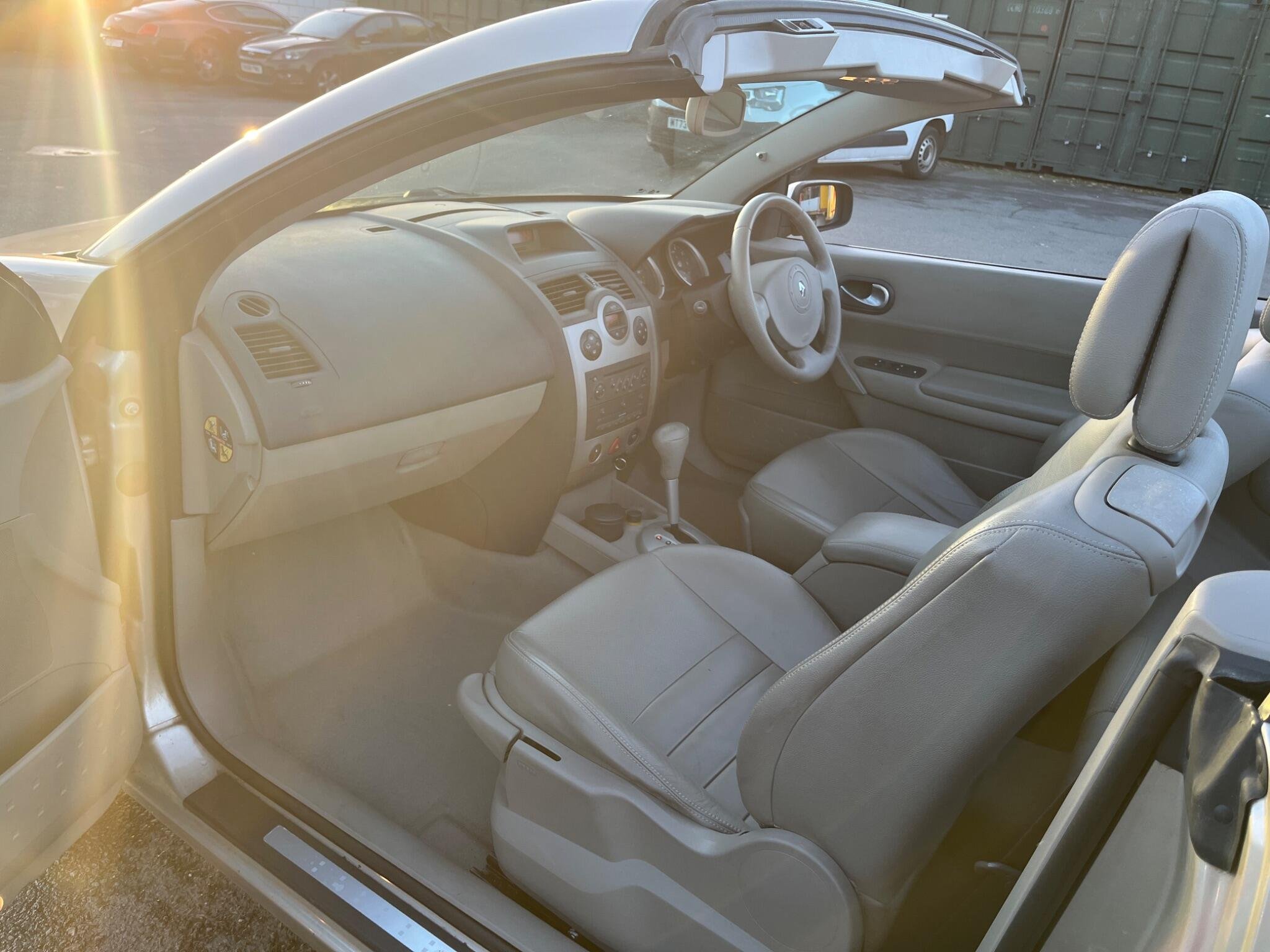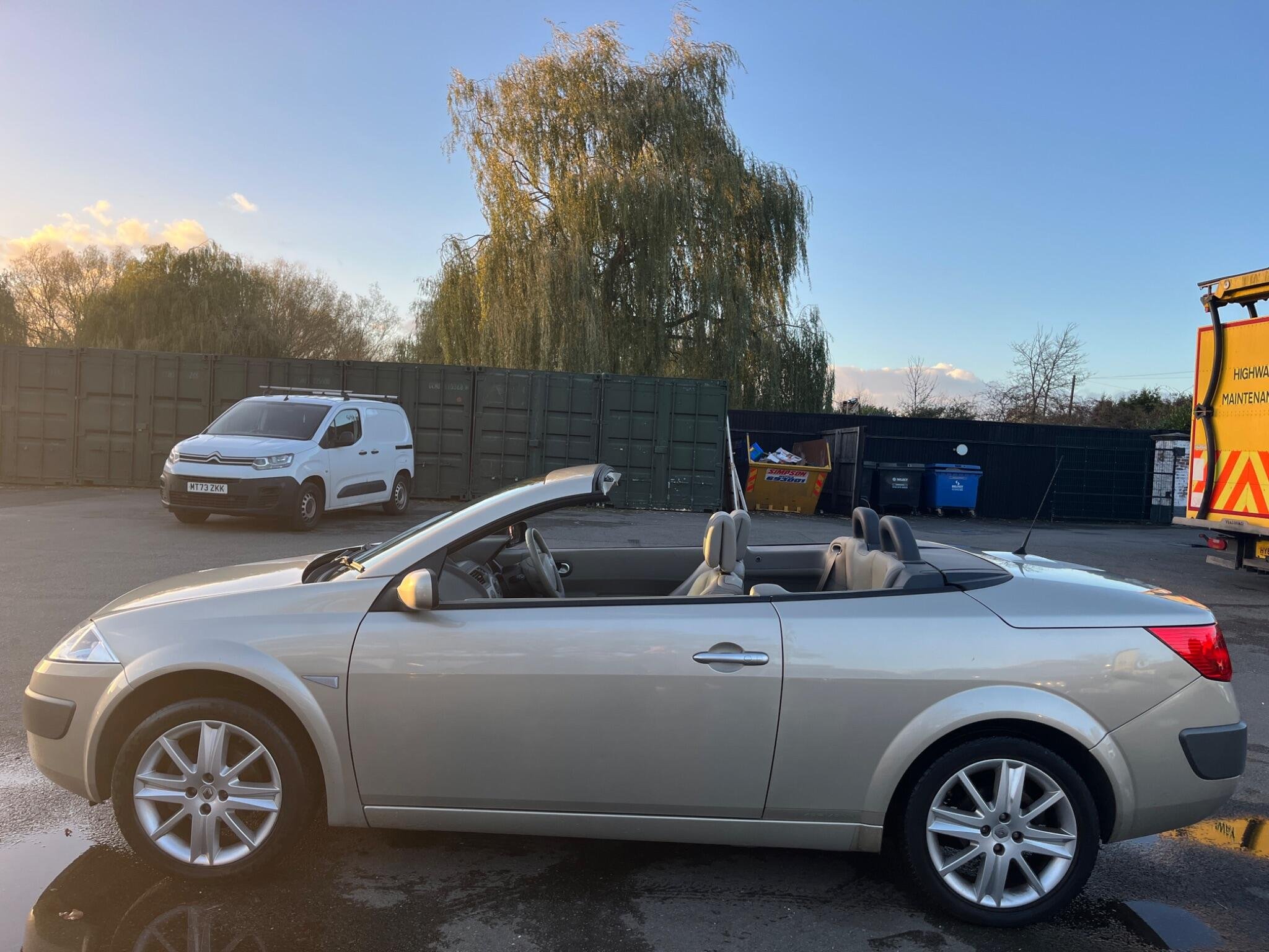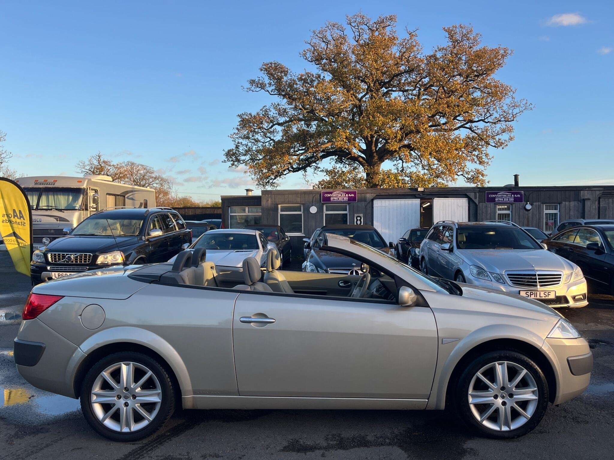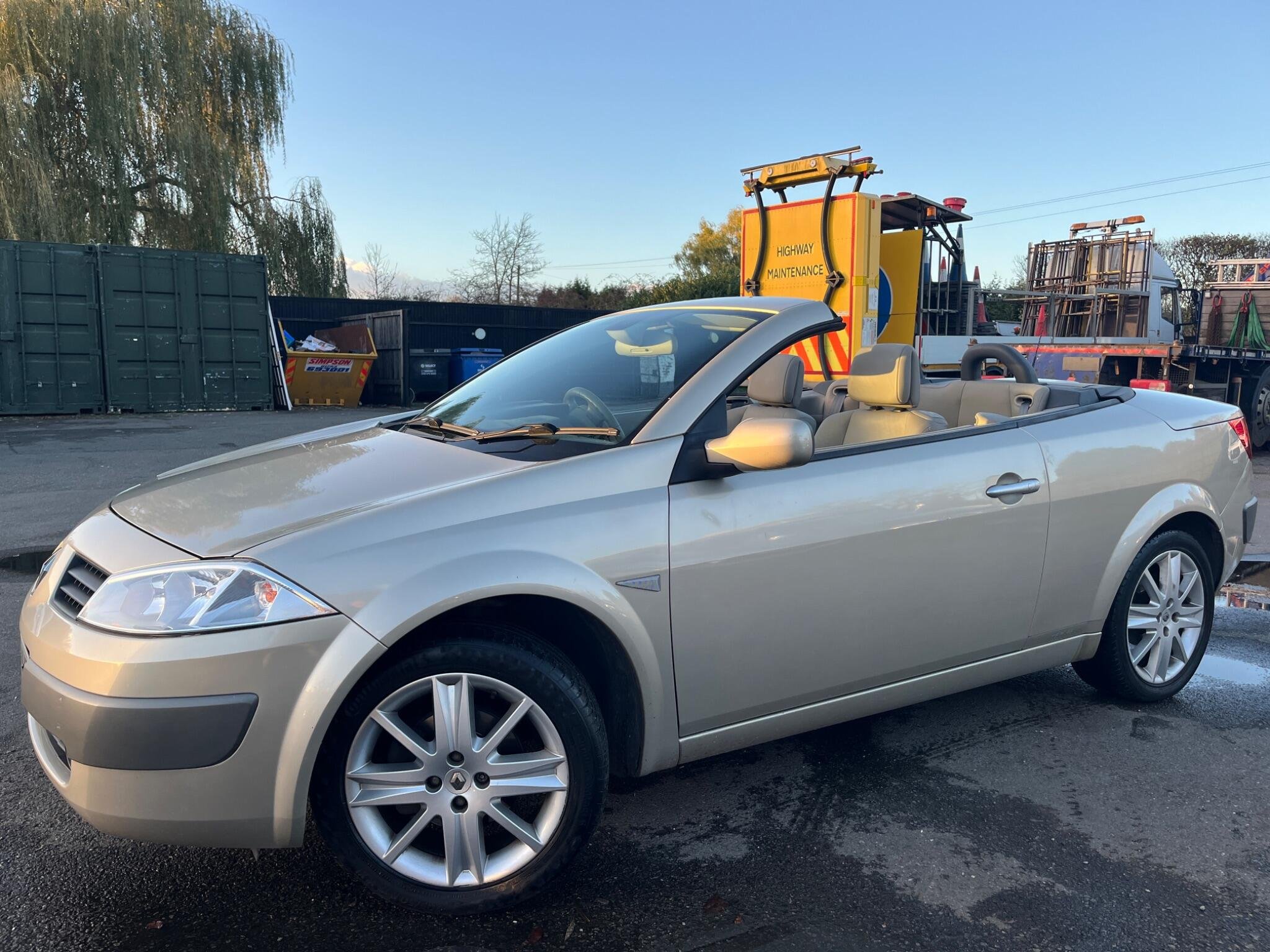 NEW CAM-BELT AND WATER- PUMP FITTED THIS WEEK THIS Renault Megane 2.0 VVT Privilege 2dr AUTOMATIC POWER ROOF CONVERTIBLE LOOKS AMAZING IN CHAMPAGNE METALlIC PAINTWORK AND CONTRASTING CREAM LEATHER HEATED SEATS. THE LAST OWNER HAS LOVED THE CAR FOR 20 YEARS YOU CAN TELL THAT BY THE SUPERB CONDITION THE SPORTS CONVERTIBLE IS IN YES AND IT'S REALLY LOW LOW LOW MILEAGE FOR THE YEAR 35K WITH A GOOD FULL SERVICE HISTORY 22 SERVICES 11 OF THE MAIN DEALER AND JUST SERVICED IN MAY 2025 @ 35297 & IT COMES A NEW MOT WITH NO ADVISES. THIS CAR IS LOADED WITH WITH SOME FACTORY EXTRAS TOO MANY TO LIST HERE. POWER CONVERTIBLE PANORAMIC GLASS SUNROOF, FACTORY FITTED, STEREO RADIO WITH CD-MULTI-PLAYER, FRONT AND REAR PARKING AID DUAL ZONE DIGITAL CLIMATE CONTROL AIR-CONDITIONING, REMOTE CONTROL CENTRAL LOCKING, ZENON HEADLIGHTS, ALLOY WHEELS WITH GOOD TYRES ALL ROUND. 2 SETS OF REMOTE THERE ARE ALL THE BOOKS AND MANUALS. This Renault Megane VVT Privilege from 2005 boasts an exceptional history, having been owned by just one careful keeper since new. This well maintained example is presented with a clear vehicle history check, offering peace of mind for its next owner. Under the bonnet lies a responsive 2.0 litre petrol engine, paired with the Privilege trim level, providing a comfortable and enjoyable driving experience. The Megane VVT Privilege stands out with its low insurance group, making it an economical choice for many drivers. You can also expect impressive fuel economy of 34 miles per gallon, alongside commendably low CO2 emissions for its class. Practicality is also a strong suit, with generous boot space designed to accommodate your luggage or shopping needs with ease.