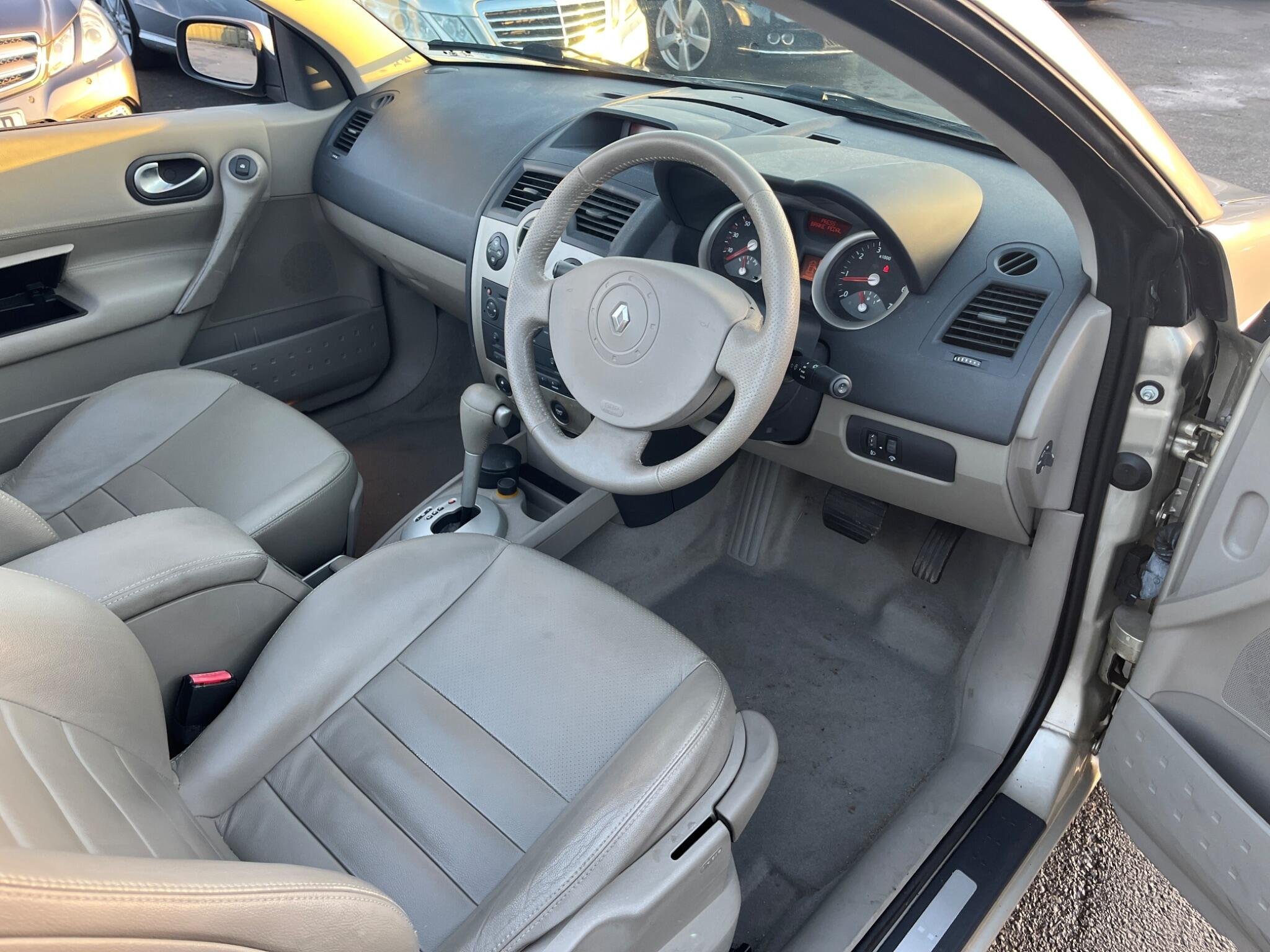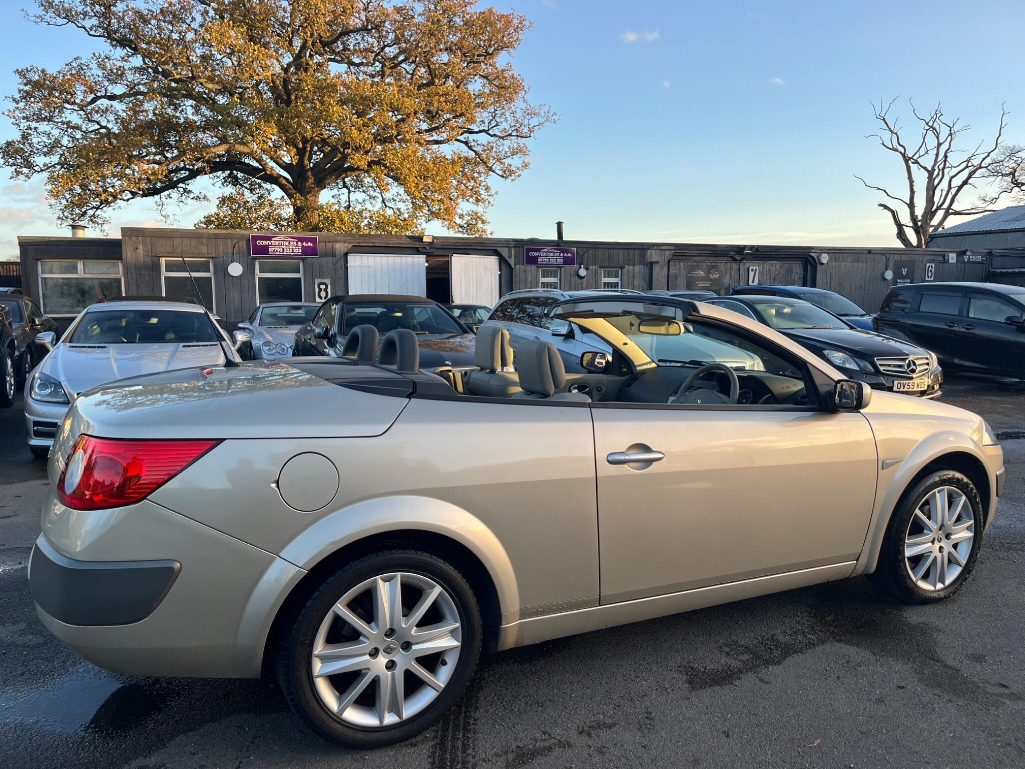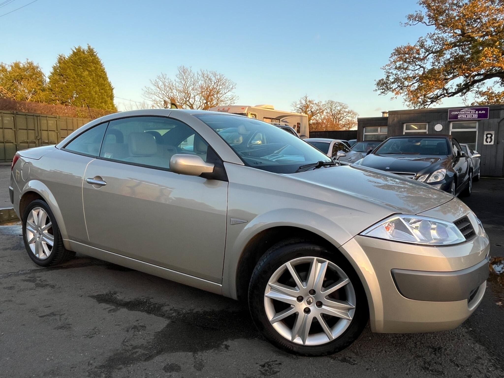 NEW CAM-BELT AND WATER- PUMP FITTED THIS WEEK THIS Renault Megane 2.0 VVT Privilege 2dr AUTOMATIC POWER ROOF CONVERTIBLE LOOKS AMAZING IN CHAMPAGNE METALlIC PAINTWORK AND CONTRASTING CREAM LEATHER HEATED SEATS. THE LAST OWNER HAS LOVED THE CAR FOR 20 YEARS YOU CAN TELL THAT BY THE SUPERB CONDITION THE SPORTS CONVERTIBLE IS IN YES AND IT'S REALLY LOW LOW LOW MILEAGE FOR THE YEAR 35K WITH A GOOD FULL SERVICE HISTORY 22 SERVICES 11 OF THE MAIN DEALER AND JUST SERVICED IN MAY 2025 @ 35297 & IT COMES A NEW MOT WITH NO ADVISES. THIS CAR IS LOADED WITH WITH SOME FACTORY EXTRAS TOO MANY TO LIST HERE. POWER CONVERTIBLE PANORAMIC GLASS SUNROOF, FACTORY FITTED, STEREO RADIO WITH CD-MULTI-PLAYER, FRONT AND REAR PARKING AID DUAL ZONE DIGITAL CLIMATE CONTROL AIR-CONDITIONING, REMOTE CONTROL CENTRAL LOCKING, ZENON HEADLIGHTS, ALLOY WHEELS WITH GOOD TYRES ALL ROUND. 2 SETS OF REMOTE THERE ARE ALL THE BOOKS AND MANUALS. This Renault Megane VVT Privilege from 2005 boasts an exceptional history, having been owned by just one careful keeper since new. This well maintained example is presented with a clear vehicle history check, offering peace of mind for its next owner. Under the bonnet lies a responsive 2.0 litre petrol engine, paired with the Privilege trim level, providing a comfortable and enjoyable driving experience. The Megane VVT Privilege stands out with its low insurance group, making it an economical choice for many drivers. You can also expect impressive fuel economy of 34 miles per gallon, alongside commendably low CO2 emissions for its class. Practicality is also a strong suit, with generous boot space designed to accommodate your luggage or shopping needs with ease.