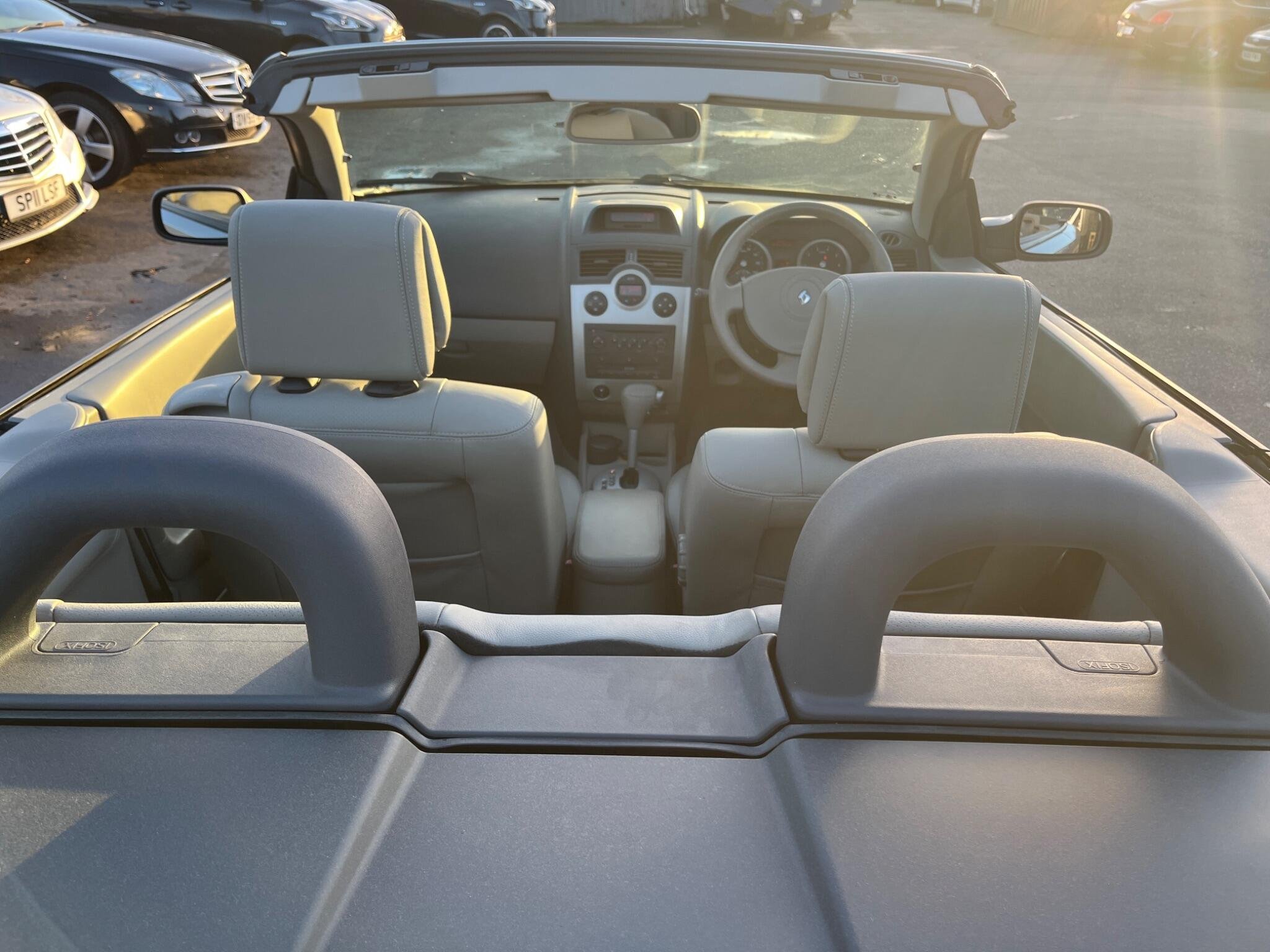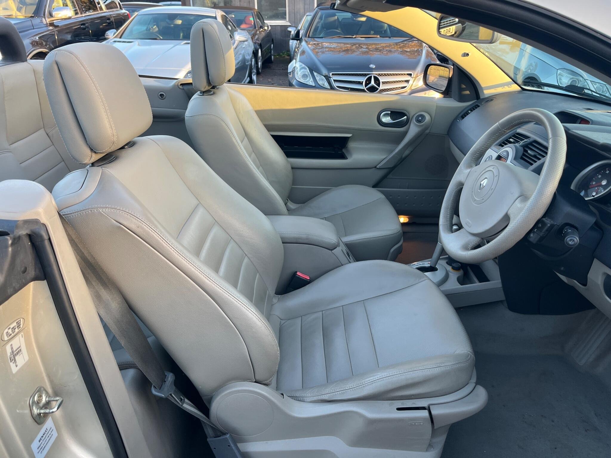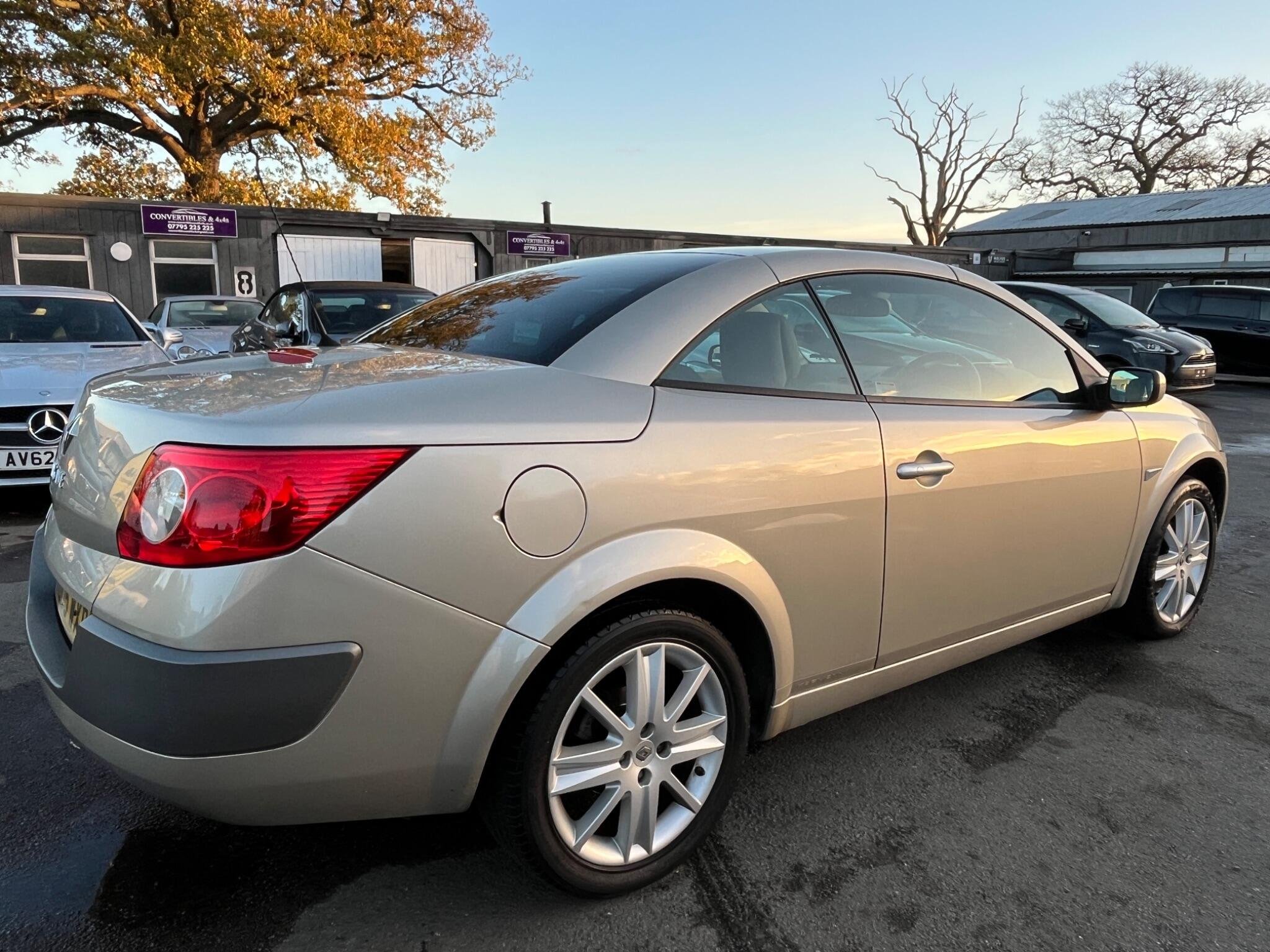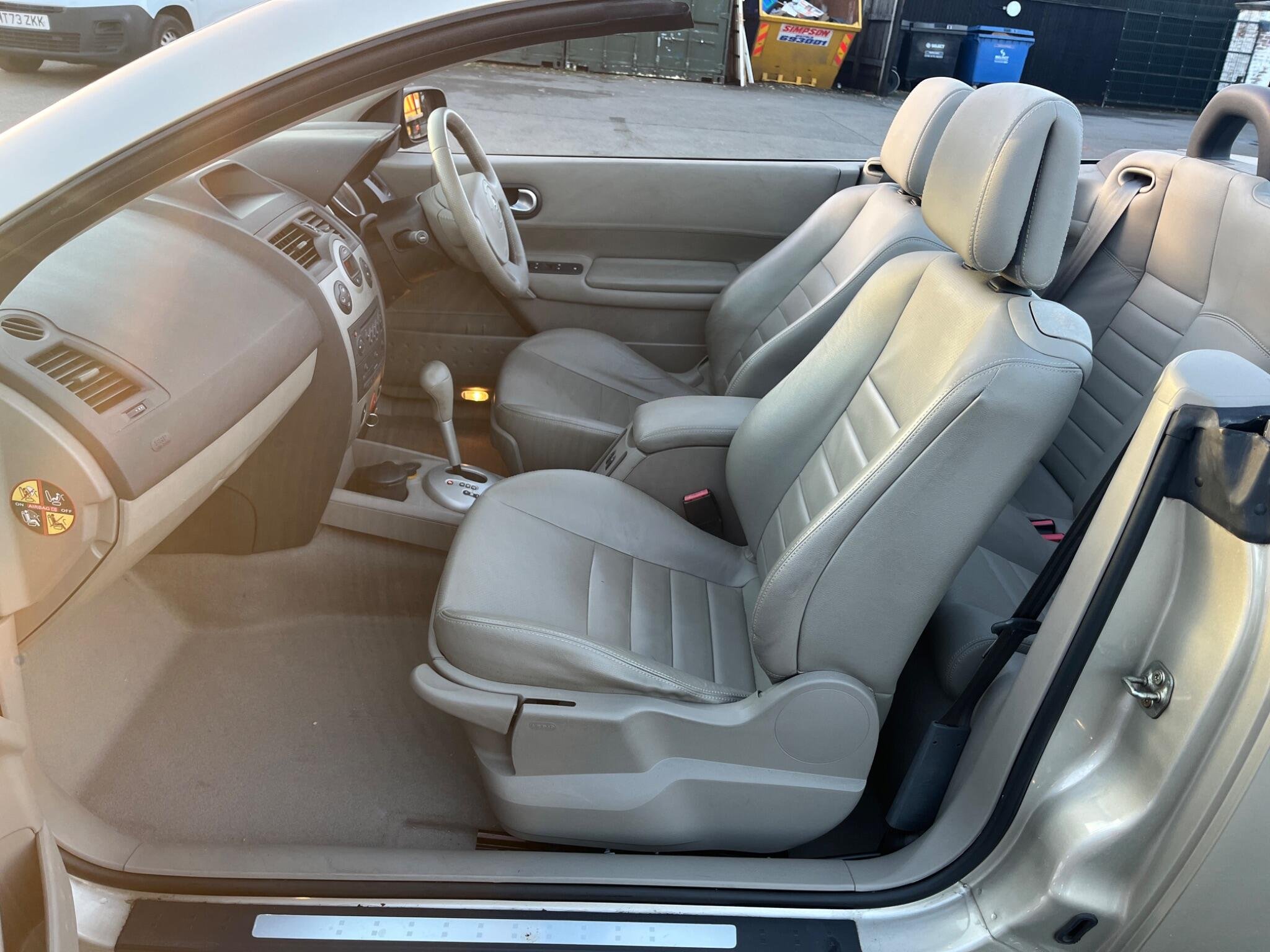 NEW CAM-BELT AND WATER- PUMP FITTED THIS WEEK THIS Renault Megane 2.0 VVT Privilege 2dr AUTOMATIC POWER ROOF CONVERTIBLE LOOKS AMAZING IN CHAMPAGNE METALlIC PAINTWORK AND CONTRASTING CREAM LEATHER HEATED SEATS. THE LAST OWNER HAS LOVED THE CAR FOR 20 YEARS YOU CAN TELL THAT BY THE SUPERB CONDITION THE SPORTS CONVERTIBLE IS IN YES AND IT'S REALLY LOW LOW LOW MILEAGE FOR THE YEAR 35K WITH A GOOD FULL SERVICE HISTORY 22 SERVICES 11 OF THE MAIN DEALER AND JUST SERVICED IN MAY 2025 @ 35297 & IT COMES A NEW MOT WITH NO ADVISES. THIS CAR IS LOADED WITH WITH SOME FACTORY EXTRAS TOO MANY TO LIST HERE. POWER CONVERTIBLE PANORAMIC GLASS SUNROOF, FACTORY FITTED, STEREO RADIO WITH CD-MULTI-PLAYER, FRONT AND REAR PARKING AID DUAL ZONE DIGITAL CLIMATE CONTROL AIR-CONDITIONING, REMOTE CONTROL CENTRAL LOCKING, ZENON HEADLIGHTS, ALLOY WHEELS WITH GOOD TYRES ALL ROUND. 2 SETS OF REMOTE THERE ARE ALL THE BOOKS AND MANUALS. This Renault Megane VVT Privilege from 2005 boasts an exceptional history, having been owned by just one careful keeper since new. This well maintained example is presented with a clear vehicle history check, offering peace of mind for its next owner. Under the bonnet lies a responsive 2.0 litre petrol engine, paired with the Privilege trim level, providing a comfortable and enjoyable driving experience. The Megane VVT Privilege stands out with its low insurance group, making it an economical choice for many drivers. You can also expect impressive fuel economy of 34 miles per gallon, alongside commendably low CO2 emissions for its class. Practicality is also a strong suit, with generous boot space designed to accommodate your luggage or shopping needs with ease.