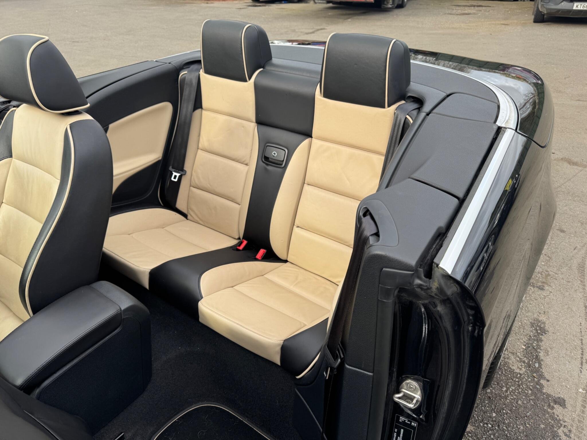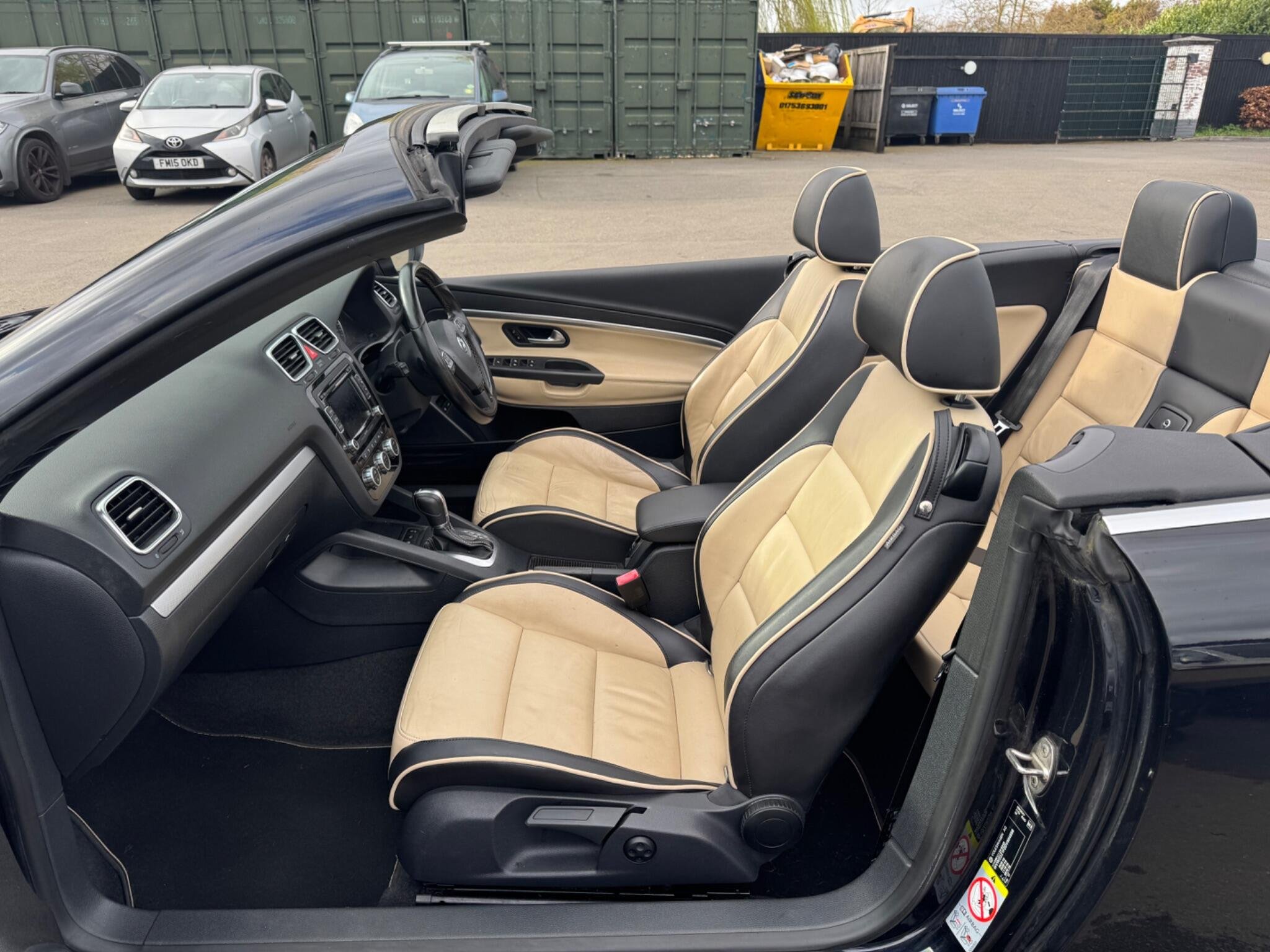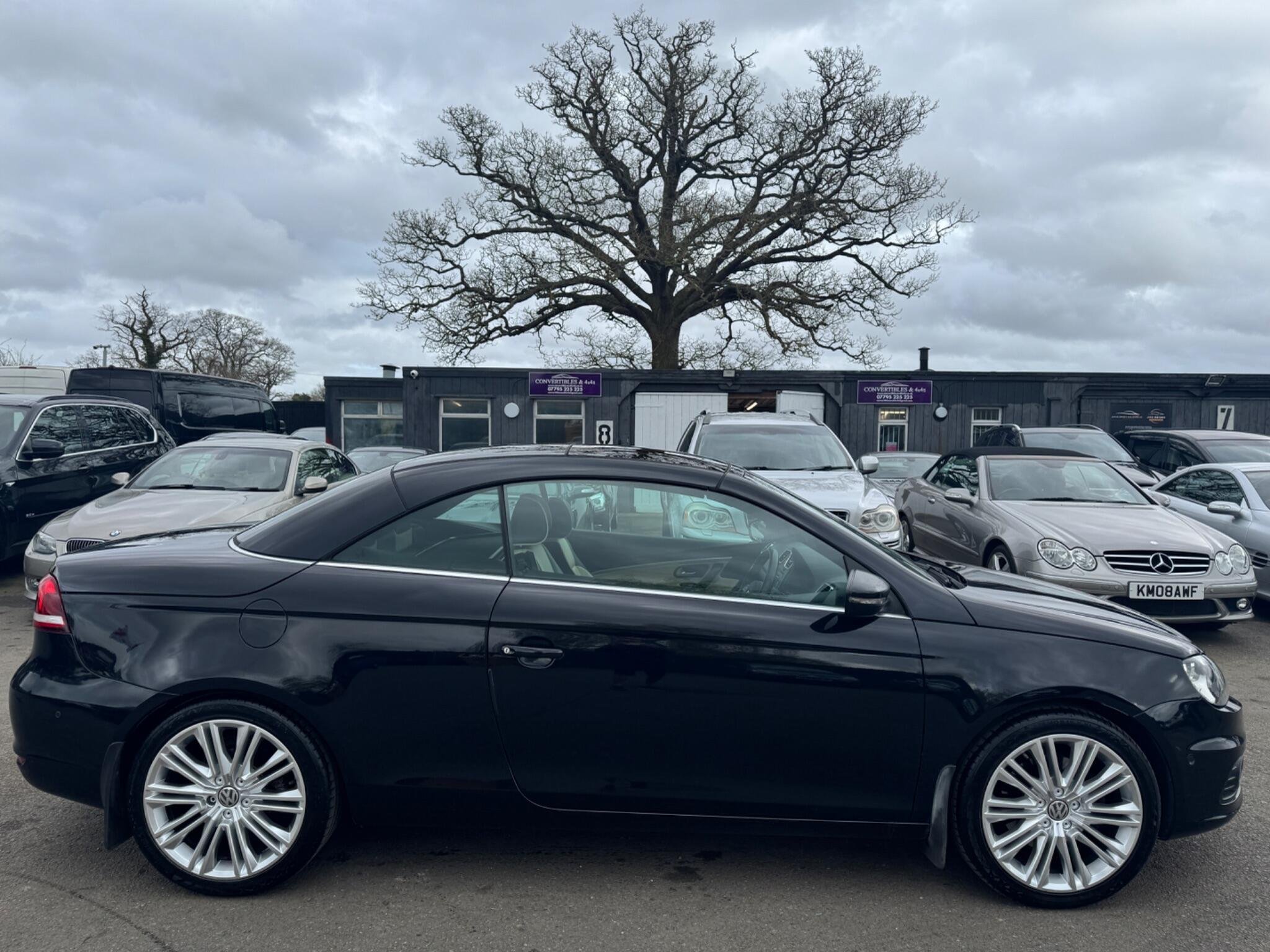 THIS Volkswagen Eos 2.0 TDI BlueMotion Tech Exclusive Cabriolet DSG AUTOMATIC Euro 5 POWER ROOF CONVERTIBLE LOOKS AMAZING IN EBONY METALLIC TWO TONE NAPPA LEATHER SAHARA BIEGE AND TITANIUM BLACK HEATED SEATS AND ALUMINIUM TRIM TO THE DASH AND DOOR CARDS YES VERY SMART. ONLY 1 OWNER & LOW MILEAGE FOR A 13 YEAR OLD CABRIOLET & THE ONE LOCAL OWNER HAS LOVED THE CABRIOLET FOR OVER 13 YEARS YOU CAN TELL THAT BY THE SUPERB CONDITION THE CONVERTIBLE IS IN YES AND IT LOW MILEAGE 75K A NEW MOT WITH NO ADVISES & A SERVICE COMES WITH SOME FACTORY EXTRAS, POWER ROOF CONVERTIBLE GLASS SUNROOF WHICH ALSO ACTS A SUNROOF WHEN HALF OPEN, CRUISE CONTRO, BLUE TOOTH TELEPHONE CONNECTION, STEREO RADIO WITH DAB & CD PLAYER, DUAL ZONE DIGITAL AIR CONDITIONING, FRONT & REAR PARKING AID, THE CAR HAS 2 SETS OF KEYS & ALL THE BOOKS AND MAUALS. This 2013 Volkswagen Eos TDI Exclusive is a standout example, having been cherished by just one owner since new. Powered by an efficient 2.0 litre diesel engine, this Exclusive trim model offers a refined driving experience. It comes equipped with the clever Park Assist system, which includes front parking sensors to aid manoeuvring, and DAB+ digital radio for enhanced entertainment. The steering wheel features paddle shifts for manual gear selection, adding a sporty feel. A key highlight is the innovative CSC roof system, a five section folding roof that incorporates a slide and tilt sunroof, allowing you to enjoy open air motoring in various configurations. Automatic driving lights, activated by a dusk sensor, ensure you always have optimal visibility. This Volkswagen Eos TDI Exclusive presents a compelling package, with its single owner provenance indicating careful use and maintenance. The inclusion of features like Park Assist and automatic headlights demonstrates a higher level of specification compared to many similar vehicles. Furthermore, its low insurance group rating makes it an economical choice for everyday driving.