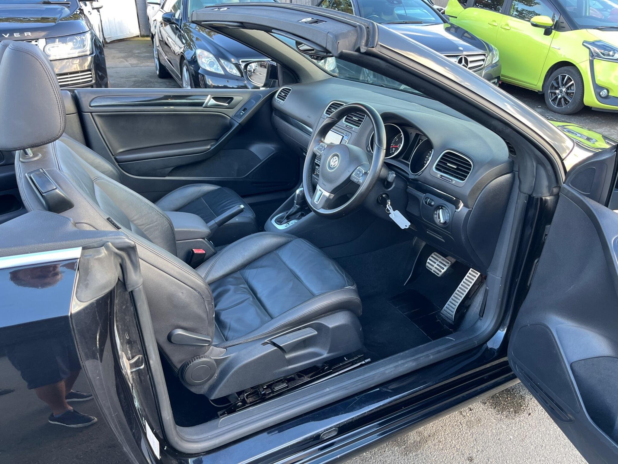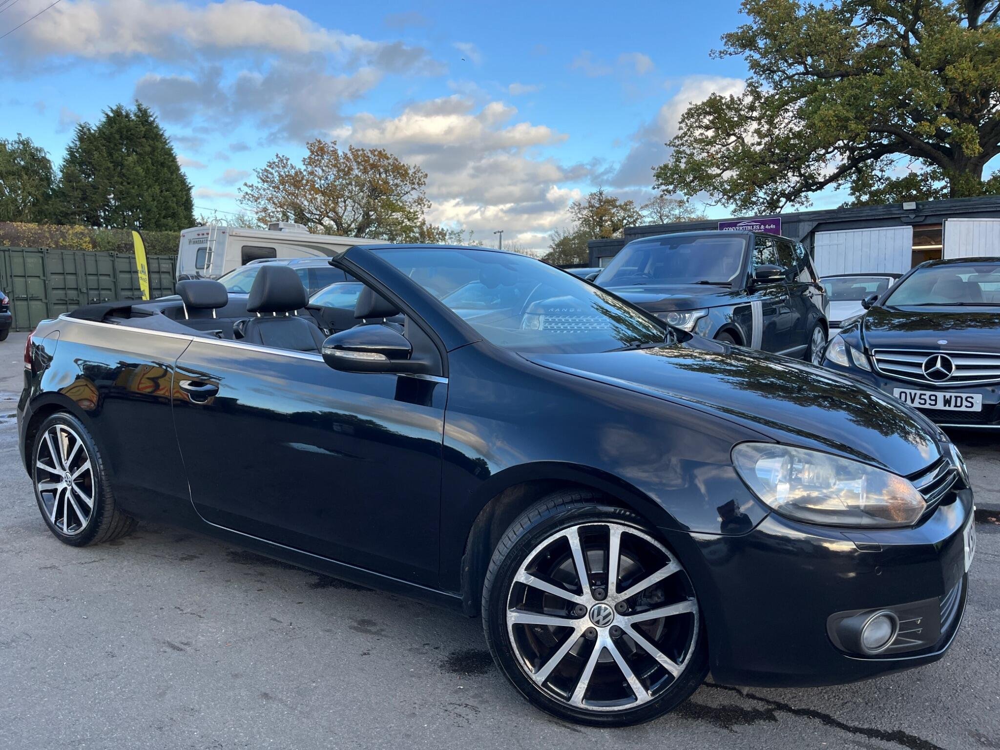 JUST HAVING A RECENT ROOF WINTER SERVICE AND ALL THE DRAINS CLEANED. THIS Volkswagen Golf 1.4 TSI GT Cabriolet DSG Euro 5 2dr POWER ROOF CONVERTIBLE AUTOMATIC LOOKS AMAZING IN EBONY METALLIC & CONTRASTING EBONY SOFT VIENNA LEATHER SEATS AND DOOR CARDS HEADLINING & ALUMINIUM TRIM TO THE DASH & DOOR CARDS YES VERY SMART. THE LAST LADY OWNER HAS LOVED THE CONVERTIBLE FOR YEARS YOU CAN TELL THAT BY THE SUPERB NEW CONDITION THE CABRIOLET IS IN YES AND IT'S REALLY GOOD MILEAGE FOR THE YEAR ONLY 80K WITH A FULL SERVICE HISTORY. EXTRAS INCLUDE COLOUR FACTORY WIDE SCREEN SAT NAV WITH WITH CD-MULTI-PLAYER, BLUE TOOTH TELEPHONE CONNECTION, FRONT & REAR PARKING AID, DUAL ZONE DIGITAL CLIMATE CONTROL AIR-CONDITIONING, REMOTE CONTROL CENTRAL LOCKING, 18 INCH DIAMOND CUT ALLOY WHEELS JUST REFURBISHED IT COMES WITH 2 SETS OF REMOTE KEYS & ALL THE BOOKS & MANUALS. This 2012 Volkswagen Golf TSI GT offers a blend of style and practicality, making it an excellent choice for everyday driving. Powered by a 1.4 litre petrol engine, this GT trim model comes equipped with a range of desirable features. You'll appreciate the convenience of 2 zone electronic climate control, ensuring comfort for all occupants, and the ease of parking with both front and rear parking sensors. Stay connected on the go with Bluetooth telephone preparation, and enjoy enhanced visibility thanks to the dusk sensor which automatically activates the headlights. This Golf TSI GT also stands out with its impressive fuel economy, achieving up to 45 miles per gallon, which indicates it is more economical than many similar vehicles. Furthermore, its low CO2 emissions highlight its environmental consideration compared to other cars in its class. The generous boot space provides ample room for shopping, luggage, or sports equipment, demonstrating its versatility for various needs.