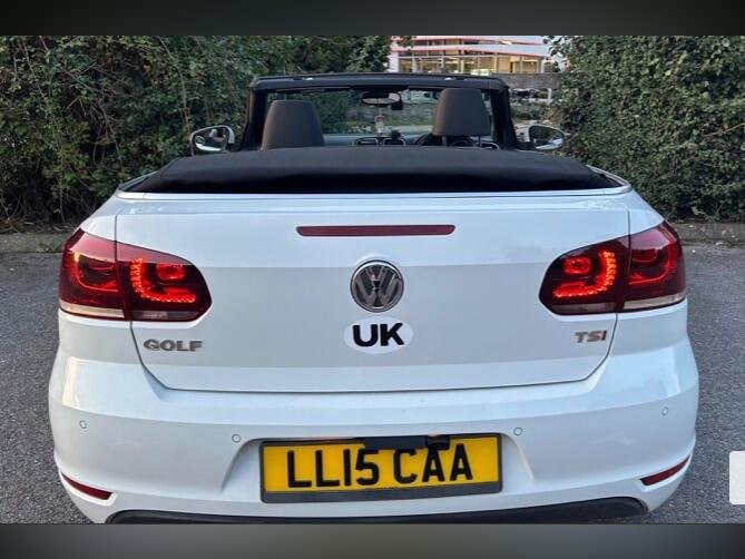 THIS Volkswagen Golf 1.4 TSI SE Cabriolet DSG Euro 5 2d CONVERTIBLE AUTOMATIC LOOKS AMAZING IN WHITE PEARL & CONTRASTING GREY CLOTH SEATS WITH CONTRASTING DOOR CARDS & HEADLINING YES VERY SMART. THE LAST LOCAL OWNER HAS LOVED THE CONVERTIBLE FOR YEARS YOU CAN TELL THAT BY THE SUPERB NEW CONDITION THE CABRIO IS IN YES AND IT'S REALLY LOW MILEAGE FOR THE YEAR ONLY 49K WITH A GOOD SERVICE HISTORY. EXTRAS INCLUDE.STEREO RADIO AND CD-MULTI-PLAYER, BLUE TOOTH TELEPHONE CONNECTION, CRUISE CONTROL, FRONT & REAR PARKING AID, DUAL ZONE DIGITAL CLIMATE CONTROL AIR-CONDITIONING, REMOTE CONTROL CENTRAL LOCKING, 17 INCH ALLOYS. THERE ARE 2 SETS OF REMOTE KEYS AND ALLThis 2015 Volkswagen Golf TSI SE presents an exceptional opportunity with its remarkably low mileage of just 50,000 miles for its age, complemented by a clear vehicle history check. This popular hatchback is equipped with a 1.4 litre petrol engine and features practical parking sensors both front and rear, along with automatic dusk sensing headlights for enhanced visibility. Inside, you'll find the comfort of 2 zone electronic climate control with automatic air recirculation and the convenience of Bluetooth telephone preparation for hands free calls. The Golf TSI SE offers a compelling package of benefits, indicating its superior value compared to similar vehicles. Its impressive fuel economy of 45 miles per gallon means fewer trips to the petrol station, while its low CO2 emissions contribute to a more environmentally friendly drive. Furthermore, its low insurance group rating makes it an economical choice for many drivers, and the generous boot space ensures you have ample room for shopping or luggage.