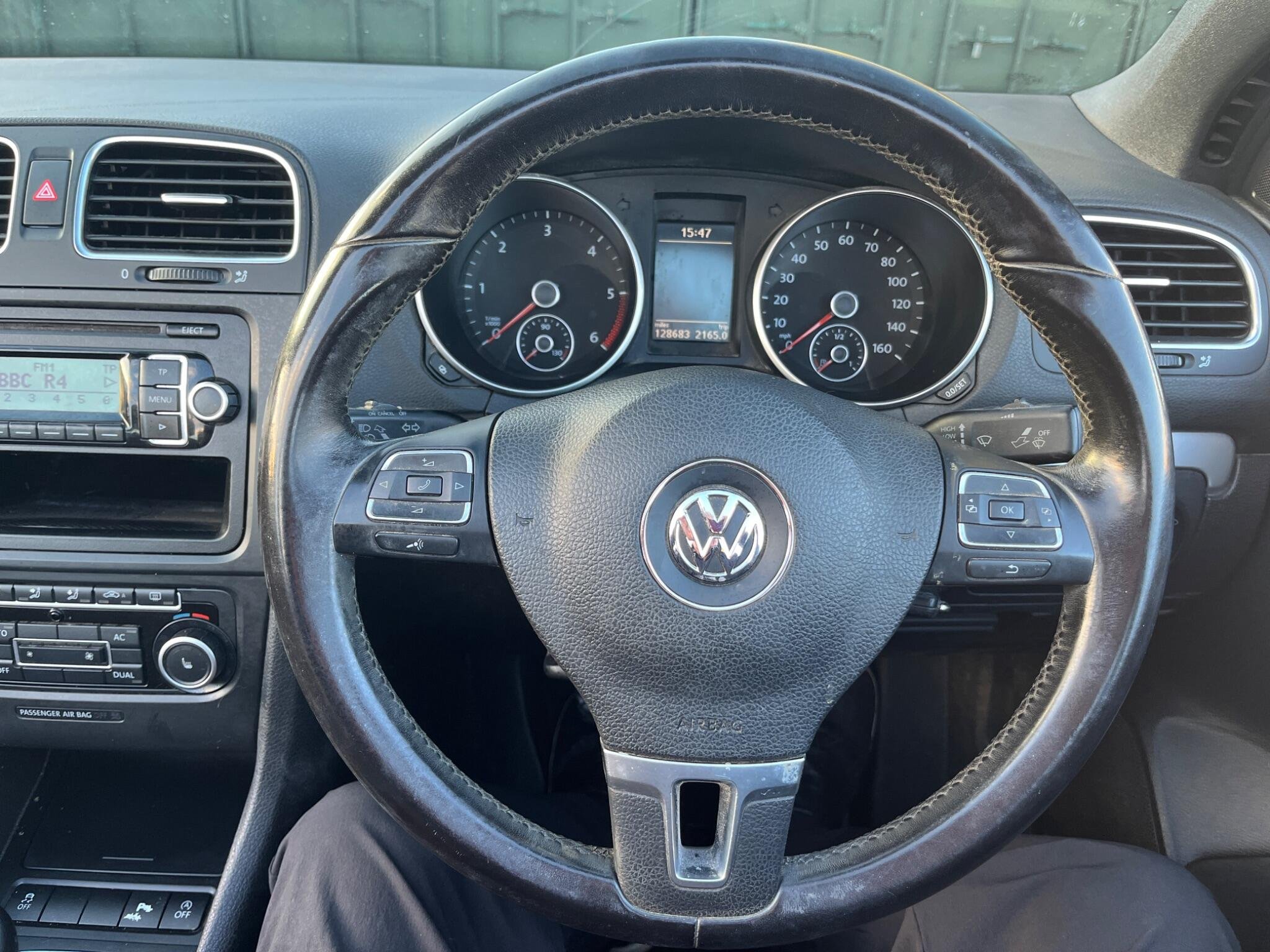 JUST TAKEN THIS CAR IN PART EXCHANGE ITS DONE 128K THOUGH IT IS 15 YEARS OLD GOLF ,THATS ONLY 8500 MILES A YEAR. IT LOOKS A DRIVES GREAT WITH VIENNA SOFT LEATHER HEATED SEATS CLIMATE CONTROL AIR CONDITIONING , CRUISE CONTROL, STEREO CD RADIO WITH DAB. 17 INCH ALLOY WHEELS This Volkswagen Golf TDI SE from 2011 boasts a clear vehicle history and has been owned by only three previous keepers, offering you peace of mind. This well maintained hatchback features a 1.6 litre diesel engine and comes with the SE trim level. Notable features include Bluetooth for handsfree calls and music streaming, front and rear parking sensors to aid manoeuvring, and automatic dusk sensing headlights for convenience. Inside, you'll find 2 zone electronic climate control with automatic air recirculation, ensuring a comfortable cabin temperature for all occupants. This Golf TDI SE is a sensible choice, offering excellent fuel economy of up to 64 miles per gallon, which is significantly better than many other vehicles in its class. Its low CO2 emissions also contribute to lower running costs and environmental impact. Furthermore, its low insurance group rating means that insuring this car is more affordable. Practicality is also a strong point, with generous boot space making it ideal for shopping trips or family holidays.A FULL SET OF BETTER PHOTOS TOMORROW AFTERNOON AFTER A PROFESSIONAL DETAIL VALET